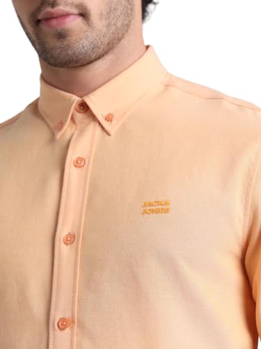JACK & JONES Men's Cotton Slim Fit Solid Button-Down Collar Casual Shirt