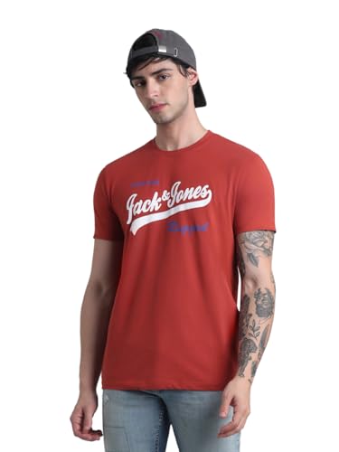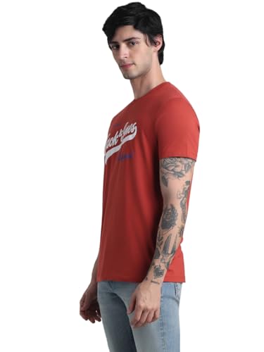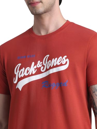 JACK & JONES Men's Cotton Typography Slim Fit Round Neck T-Shirt