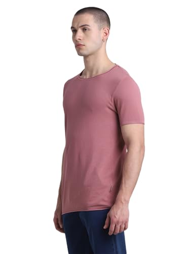 JACK & JONES Short Sleeves Round Neck Cotton Raw Edge Slim Fit T-Shirt