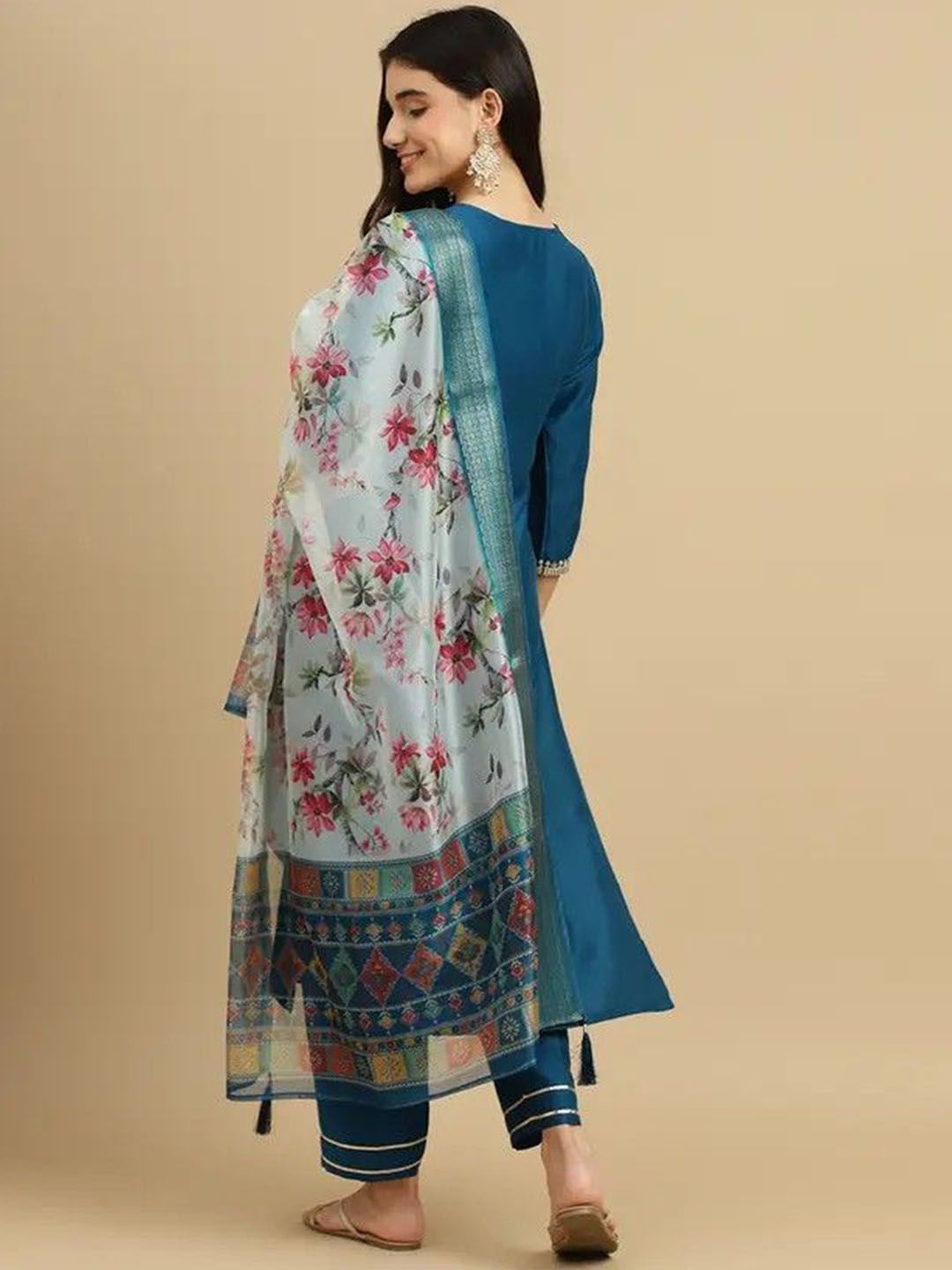 Jahal Fashion Women Floral Embroidered High Slit Thread Work Kurta with Trousers & Dupatta