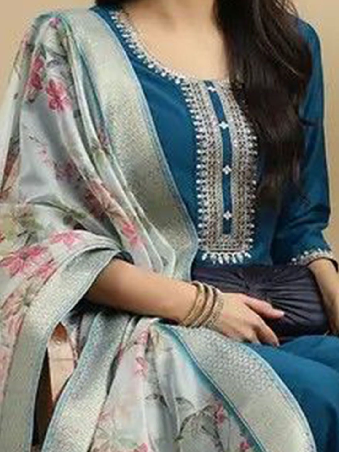 Buy this stylish Jahal Fashion Women Floral Embroidered High Slit Thread Work Kurta with Trousers & Dupatta at Marincart Nepal. This product offers great quality and value. Perfect for those looking for the latest trends in fashion. Get yours now at unbeatable prices.