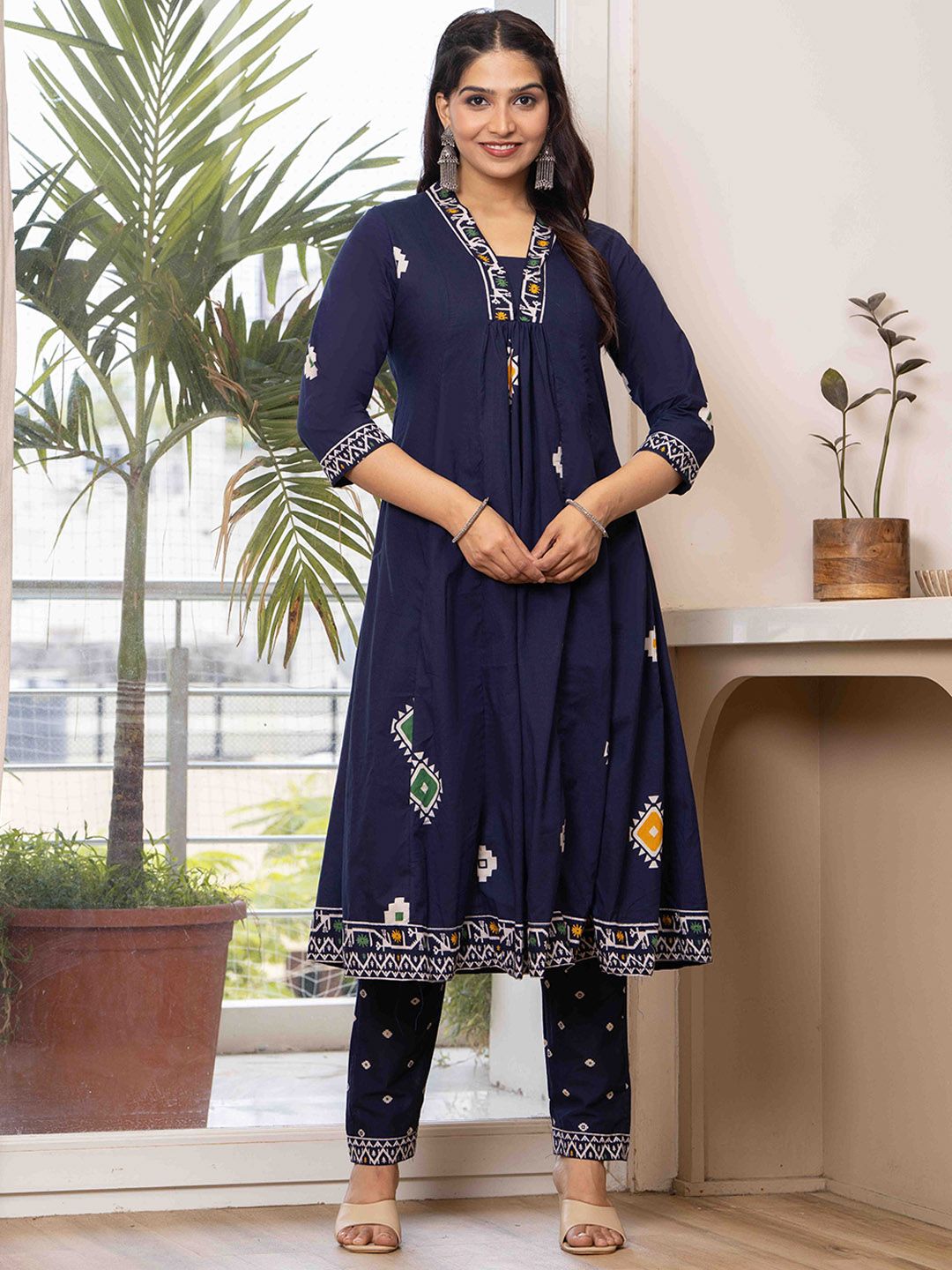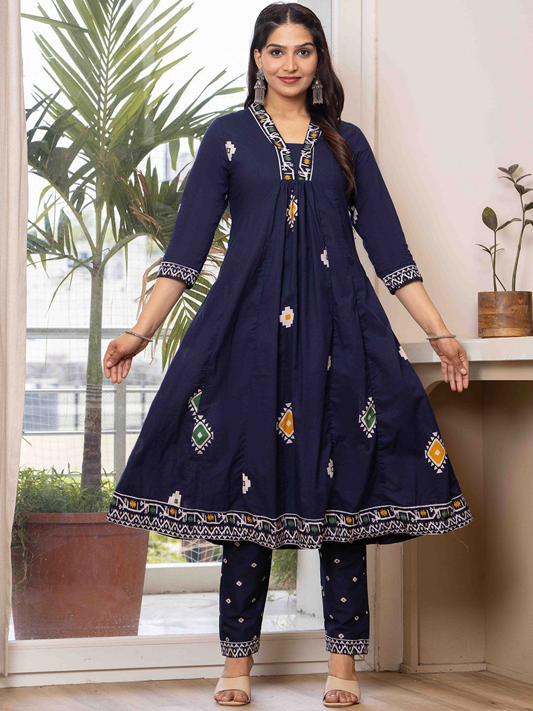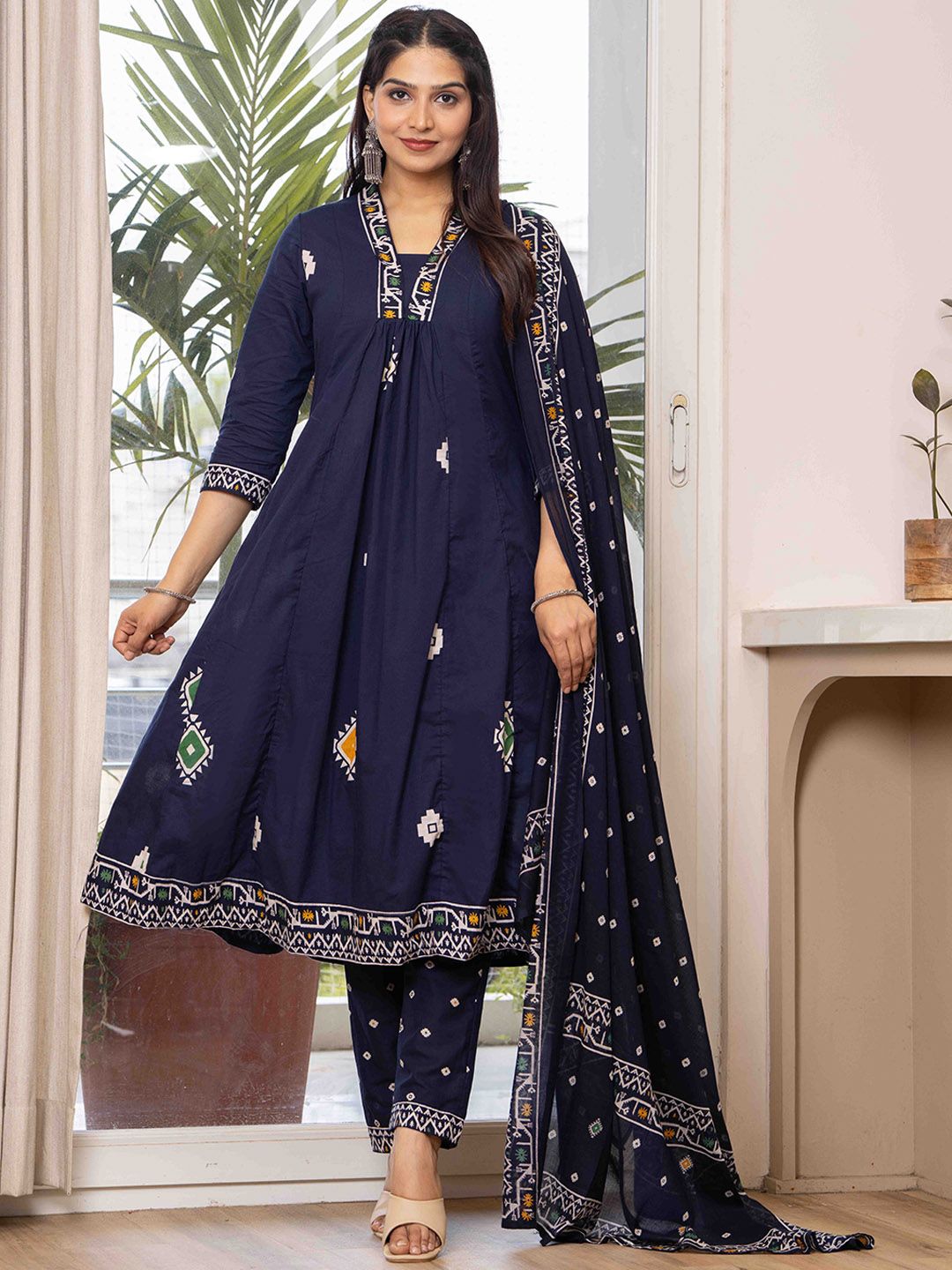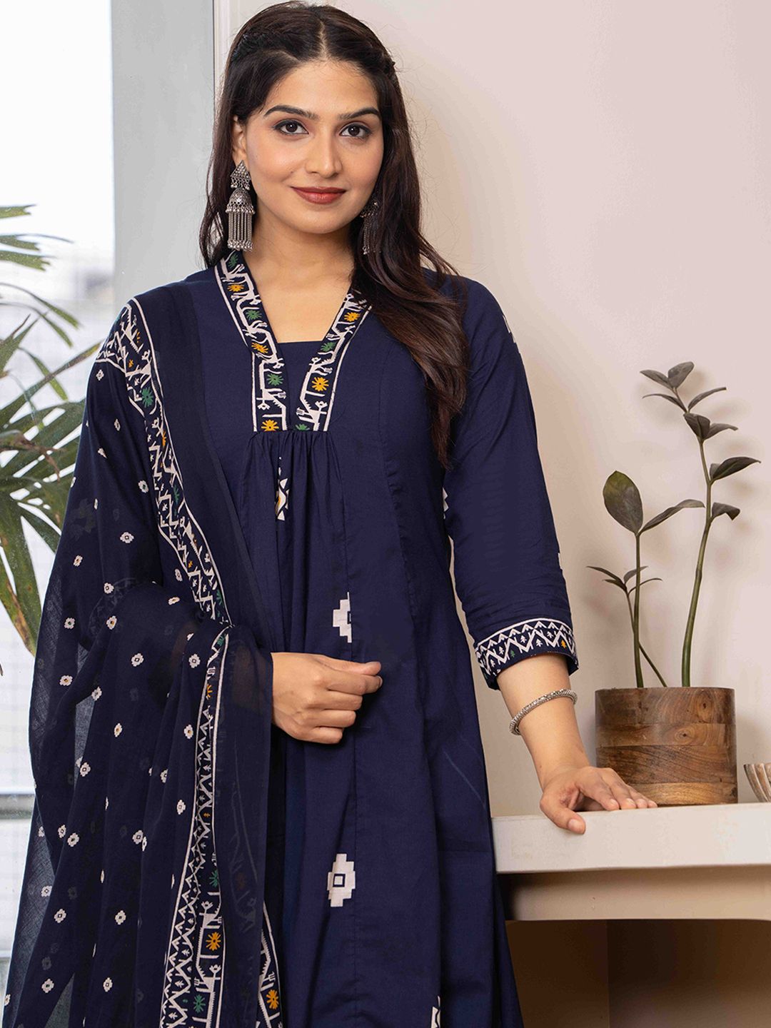 JAIMINI Women Floral Printed Cotton Anarkali Kurta with Trousers & Dupatta