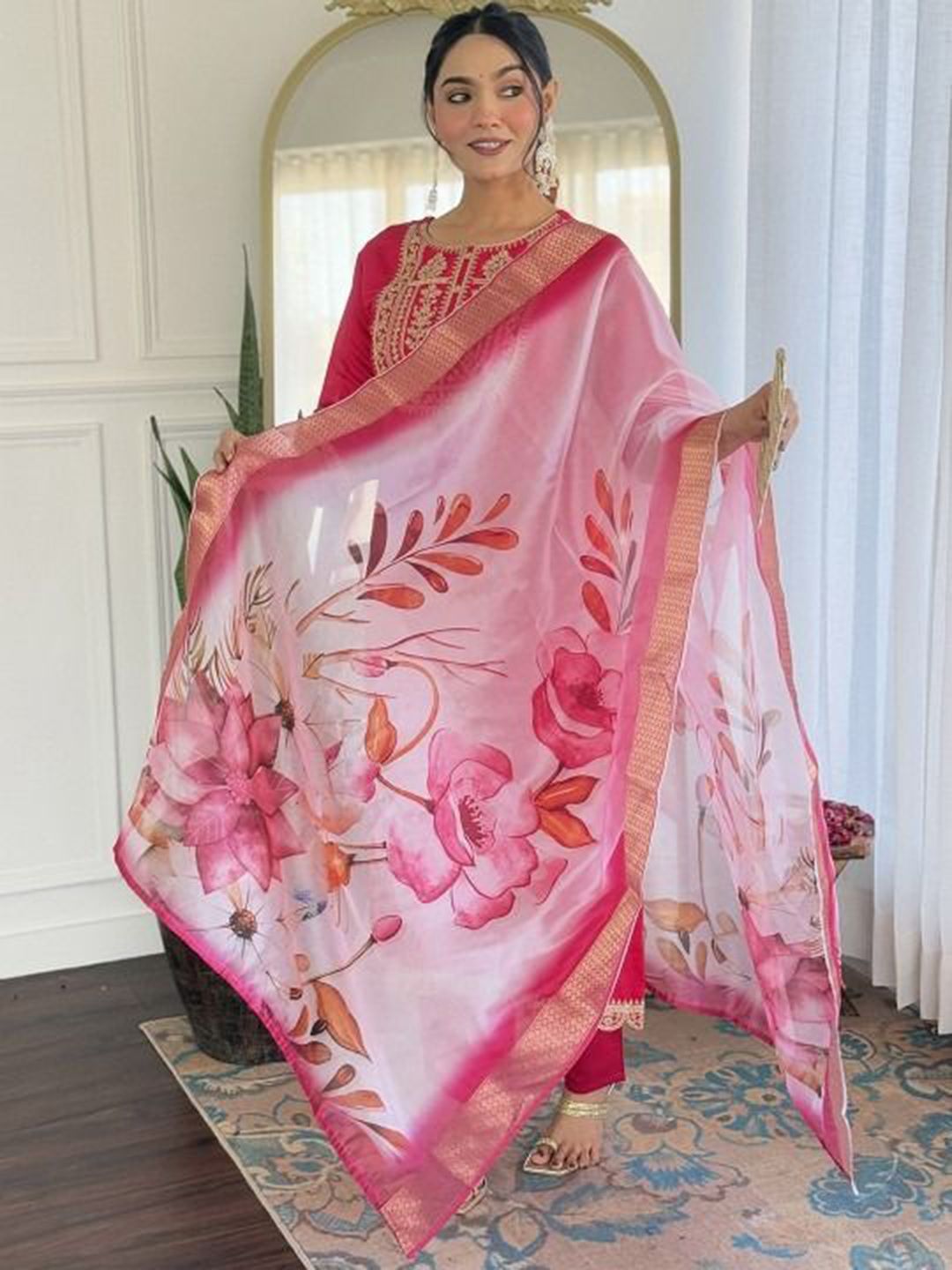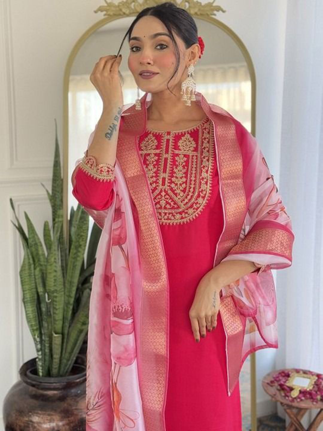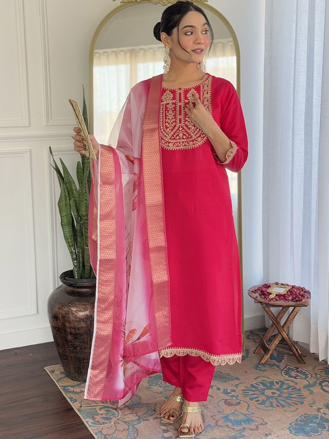 JAINICA Women Ethnic Motifs Embroidered Regular Thread Work Kurta with Trousers & Dupatta