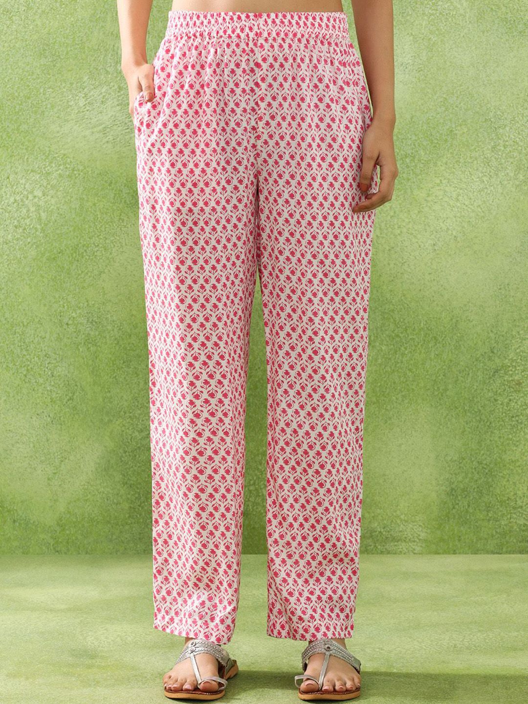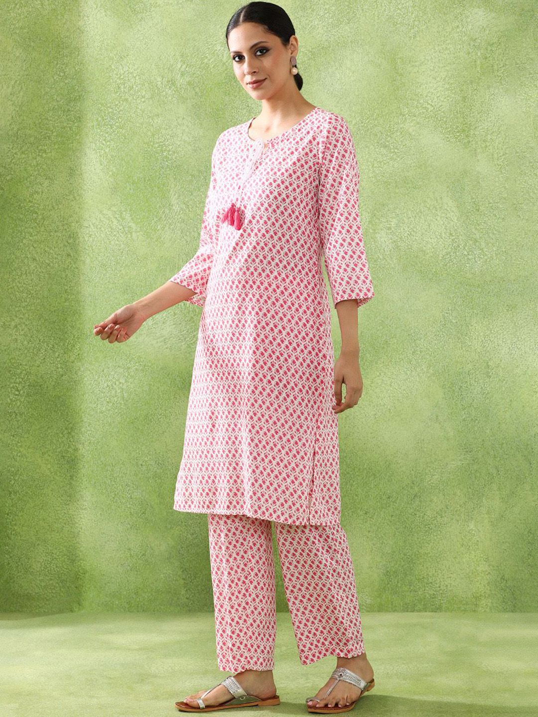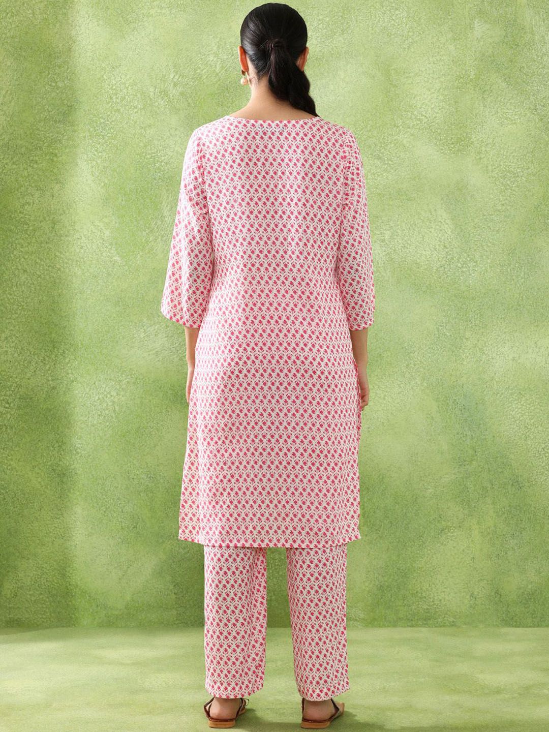 Jaipur Kurti Floral Printed Tie-Up Neck Straight Kurta With Trousers