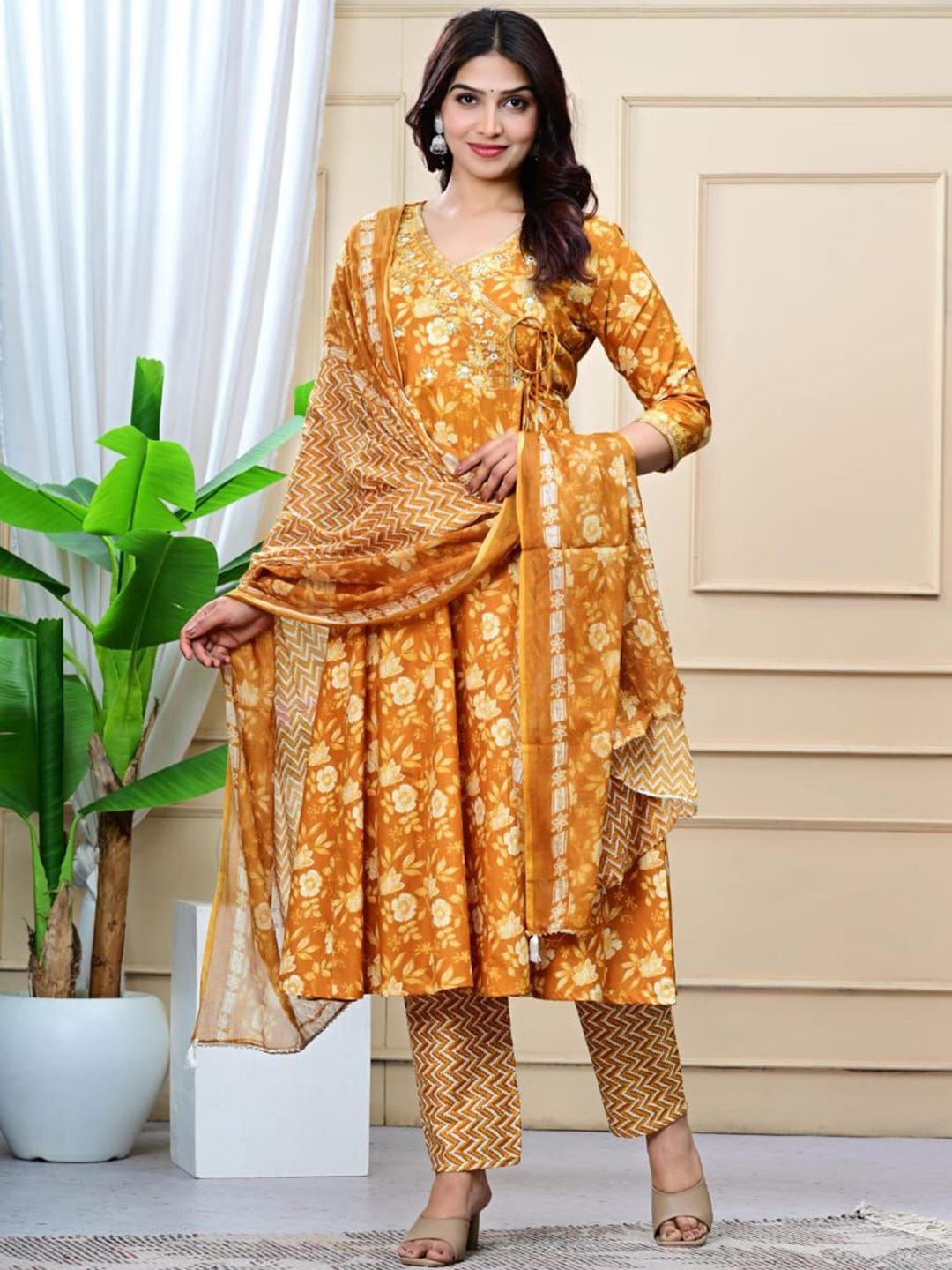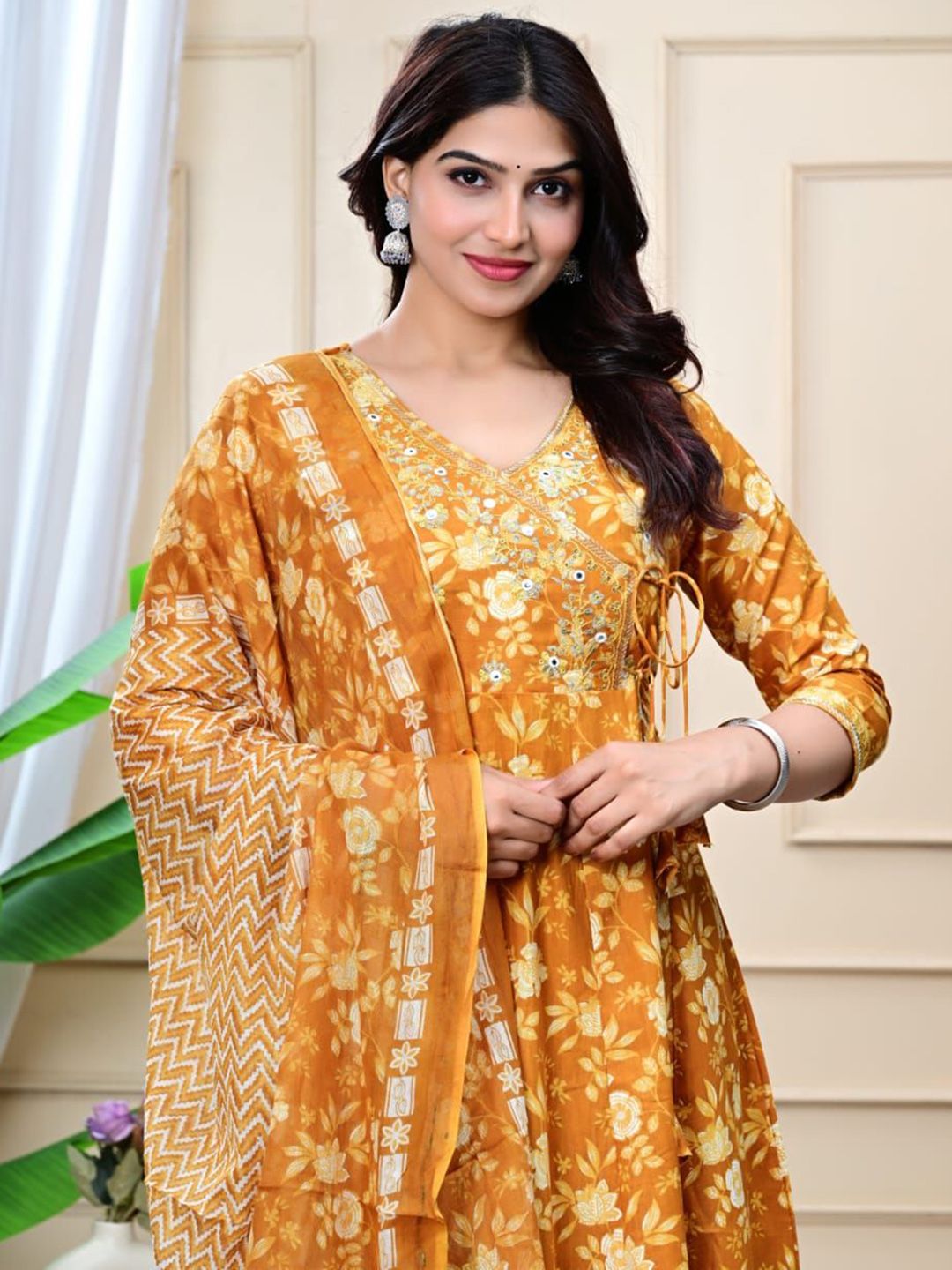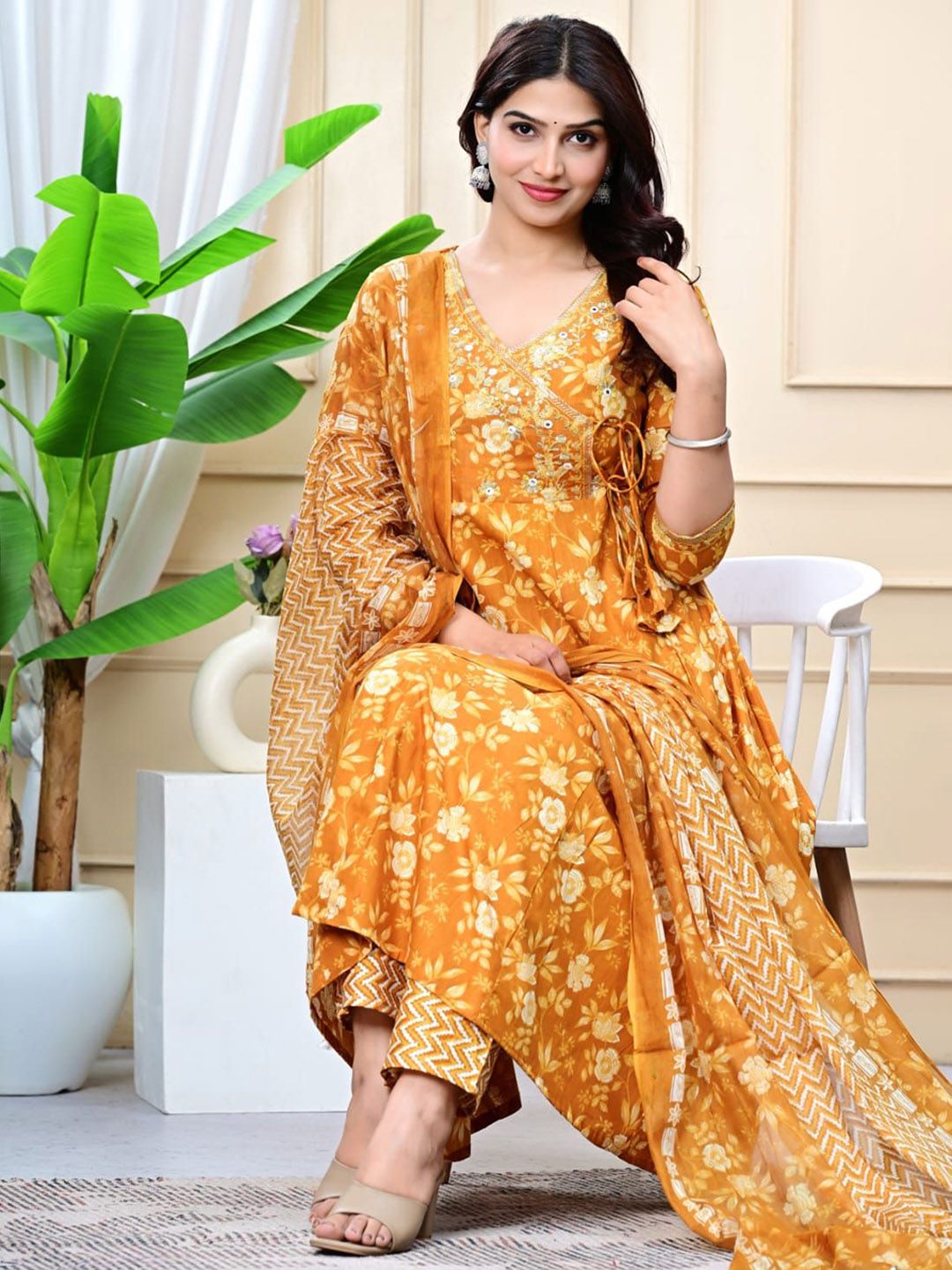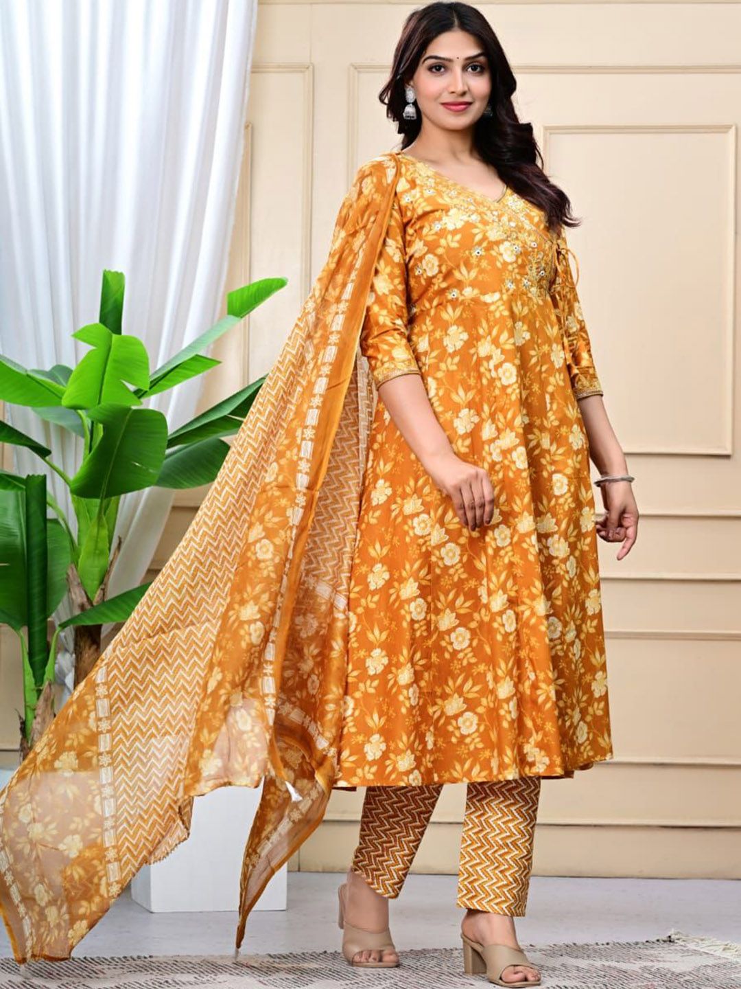 Jaipur Kurti Women Floral Printed Cotton Kurta with Trousers & Dupatta