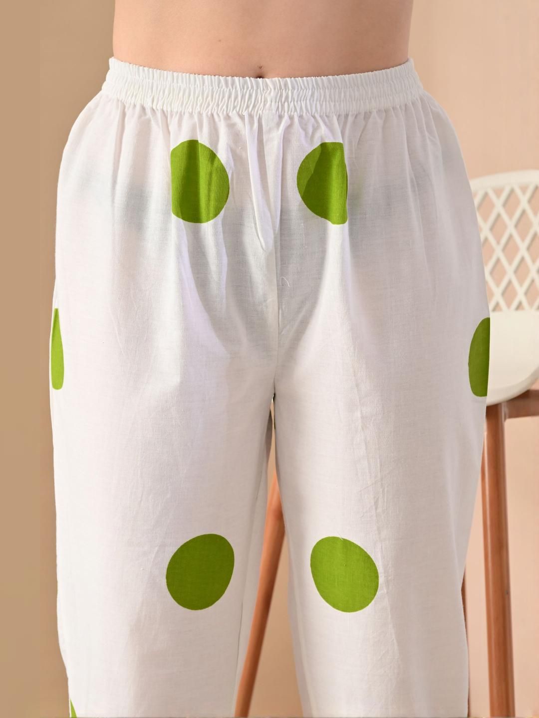 Jaipuri Fashionista Green & White Women Printed Pure Cotton Kurta with Trousers