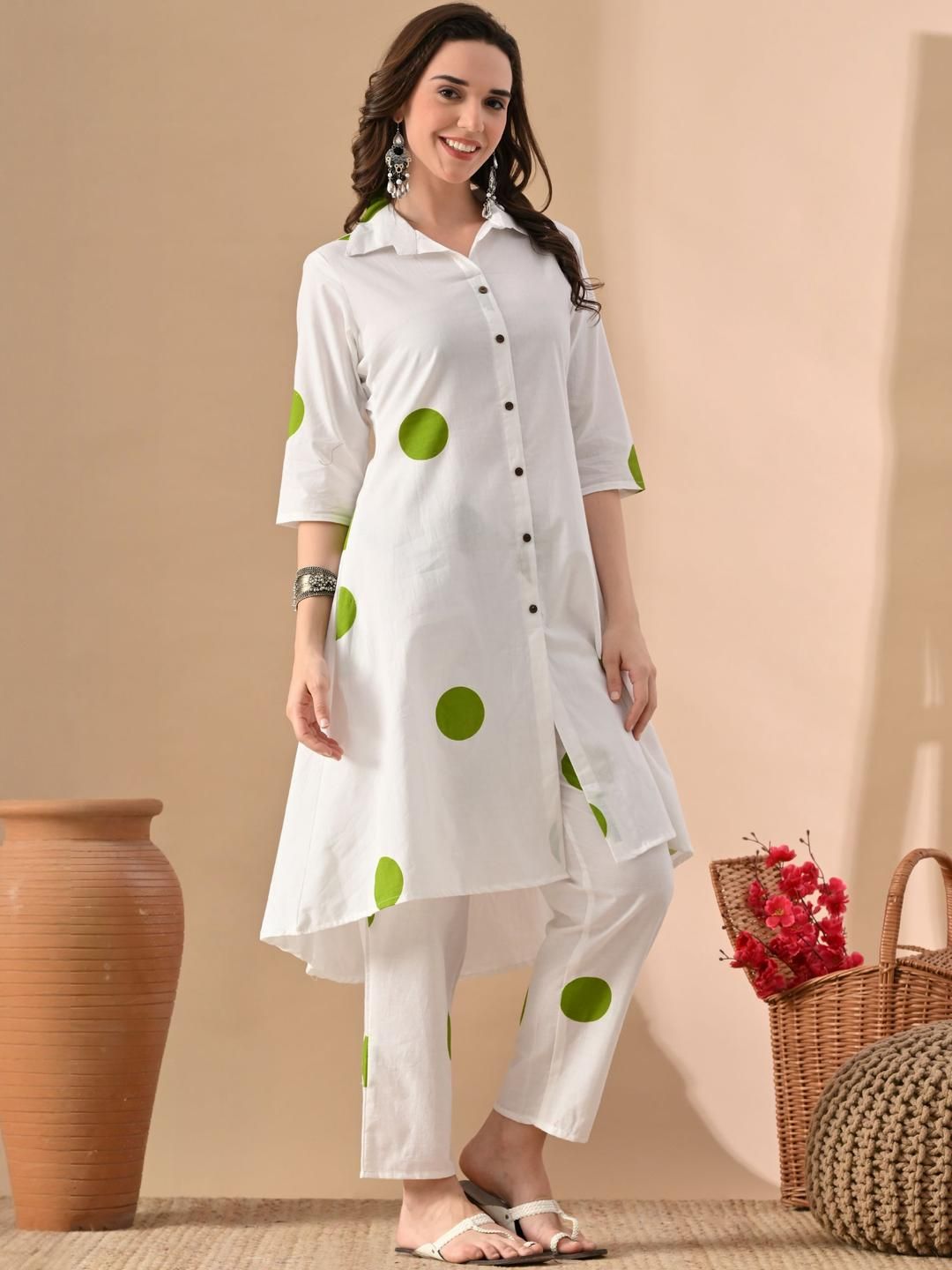 Buy this stylish Jaipuri Fashionista Green & White Women Printed Pure Cotton Kurta with Trousers at Marincart Nepal. This product offers great quality and value. Perfect for those looking for the latest trends in fashion. Get yours now at unbeatable prices.