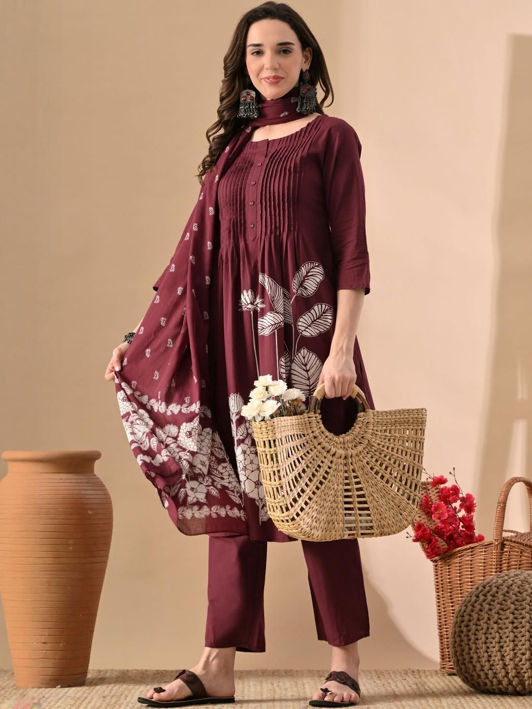 Buy this stylish Jaipuri Fashionista Women Floral Printed Pleated Pure Cotton Kurta with Trousers & Dupatta at Marincart Nepal. This product offers great quality and value. Perfect for those looking for the latest trends in fashion. Get yours now at unbeatable prices.