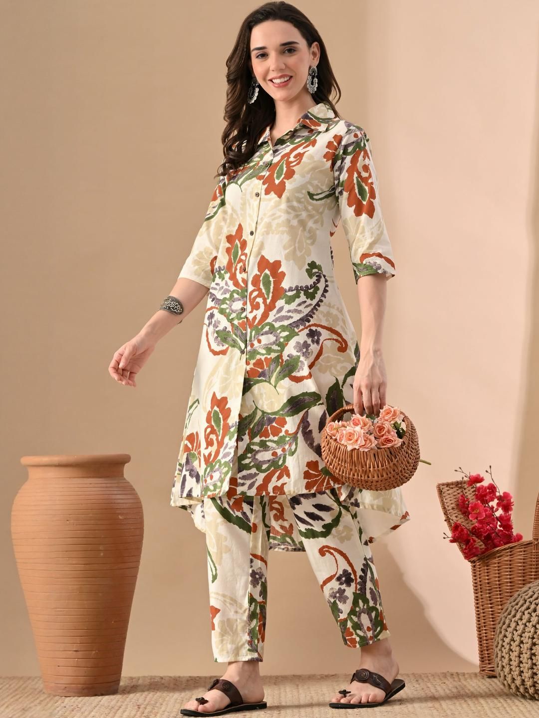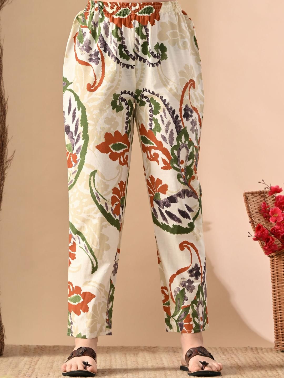 Jaipuri Fashionista Women Floral Printed Regular Pure Cotton Kurta with Trousers