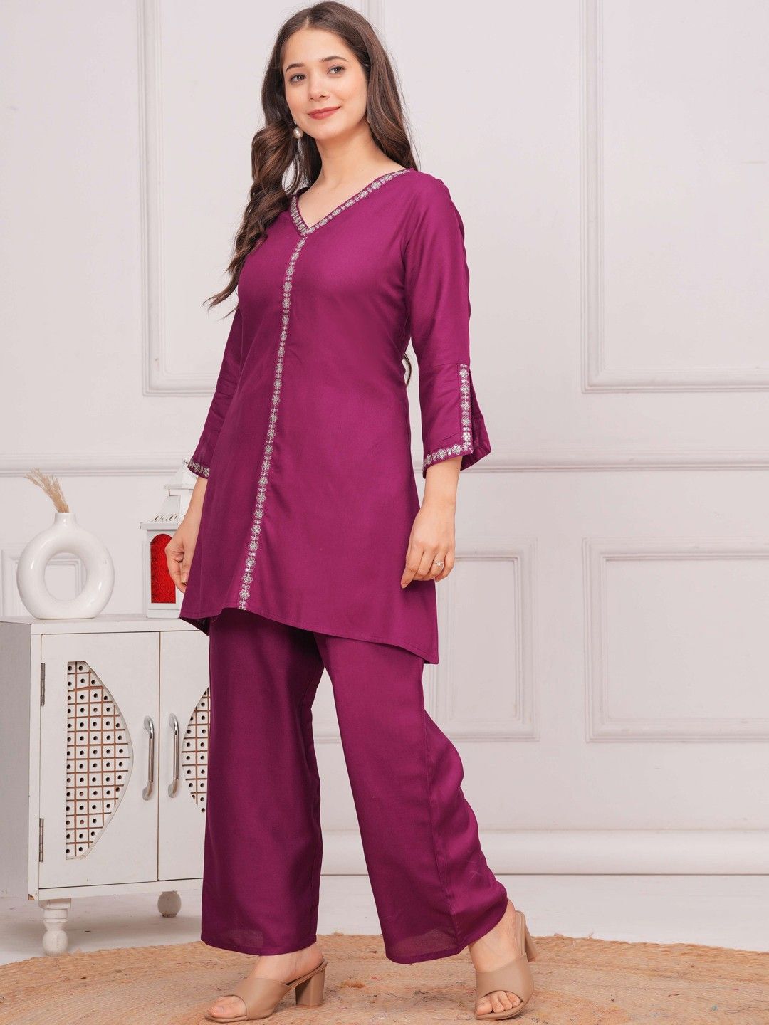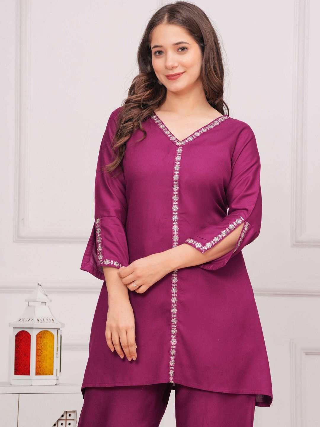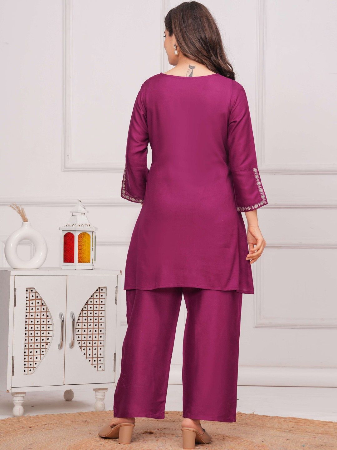 JALMALA Floral Embroidered V-Neck A-line Kurta With Trousers