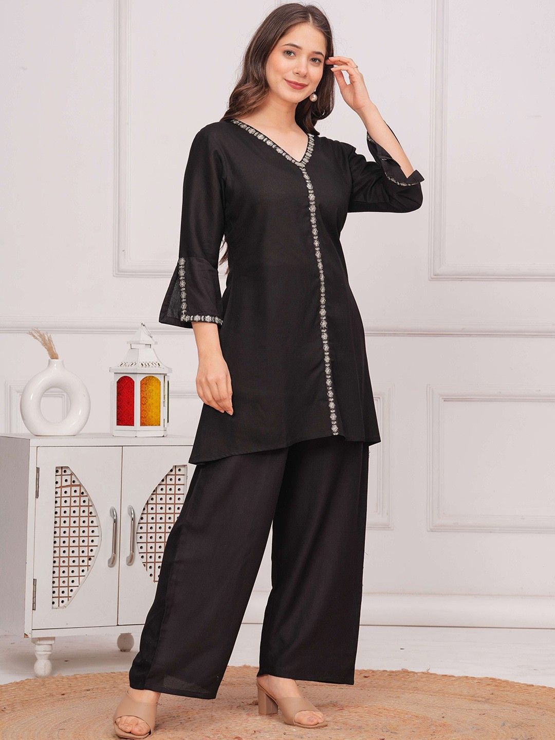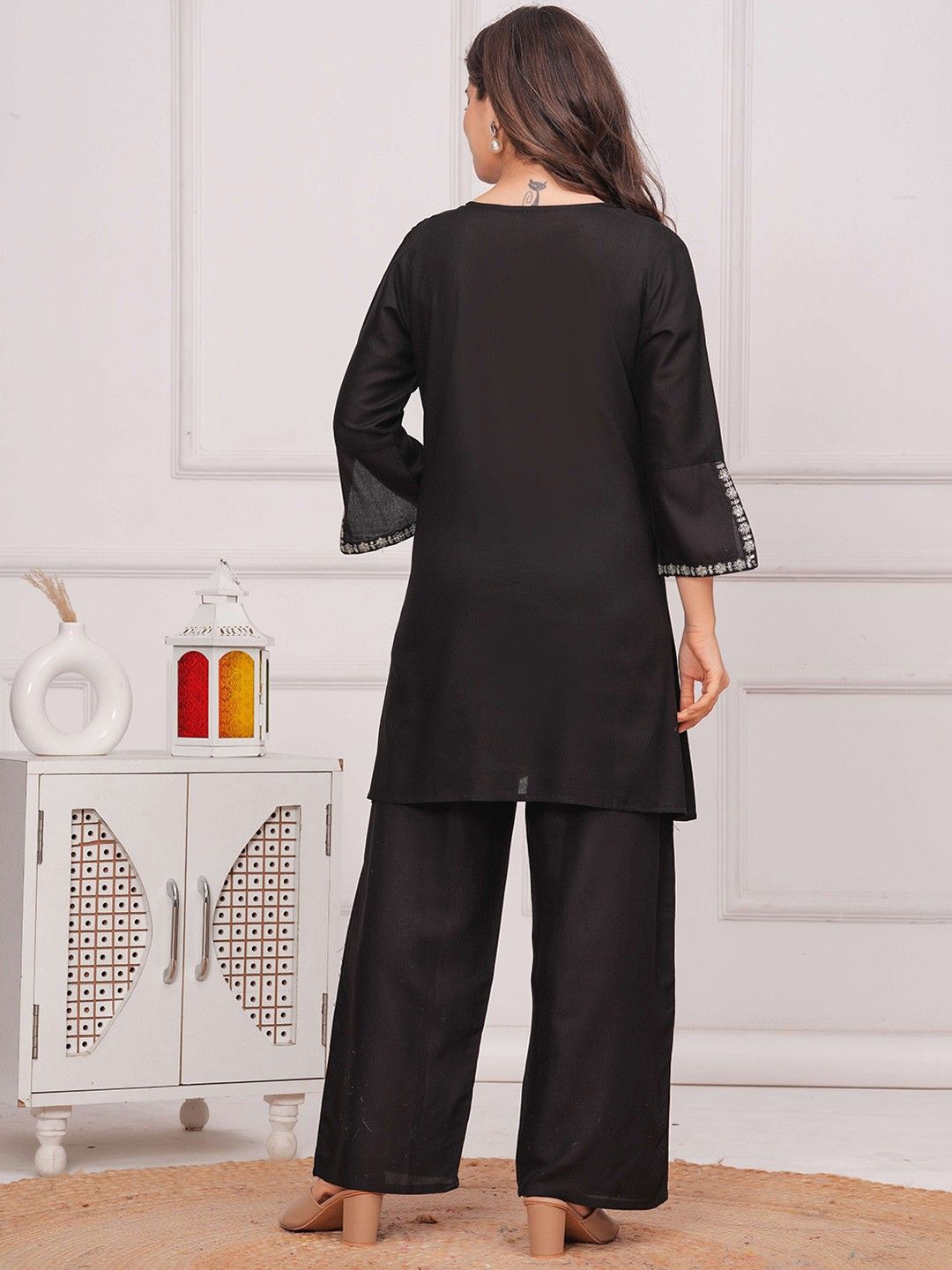 JALMALA Women Embroidered Regular Kurti with Trousers
