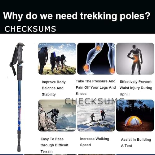 JAMUNESH ENTERPRISE ?Aluminium, Rubber Trekking Poles - Lightweight Collapsible Hiking Poles Anti Shock, Walking Sticks, Adjustable Trekking Pole for Men & Women (Black 1 Pack)