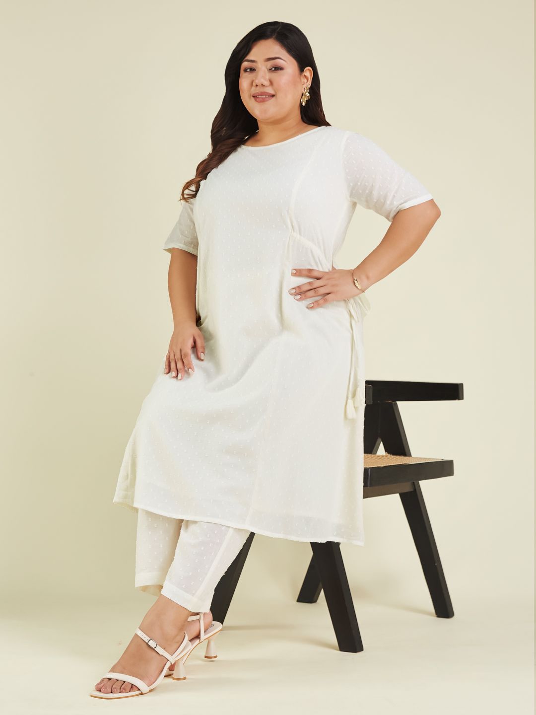 Janasya Plus Size Self Design Pure Cotton Kurta With Trousers
