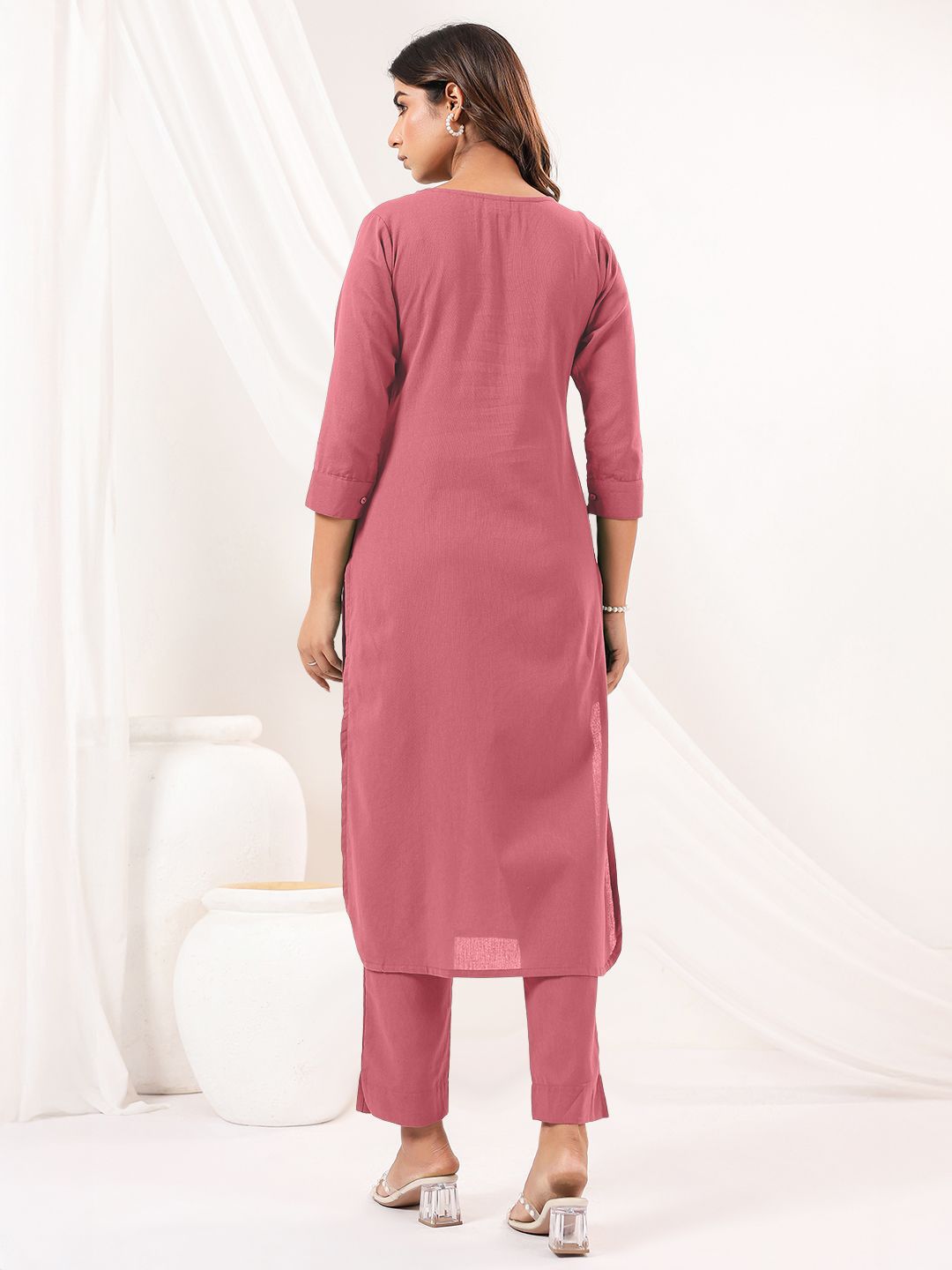 Janasya V-Neck Linen Cotton Kurta With Trousers