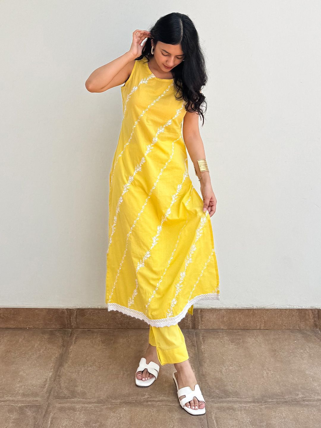 Janasya Women Floral Embroidered Cotton Kurta with Trousers