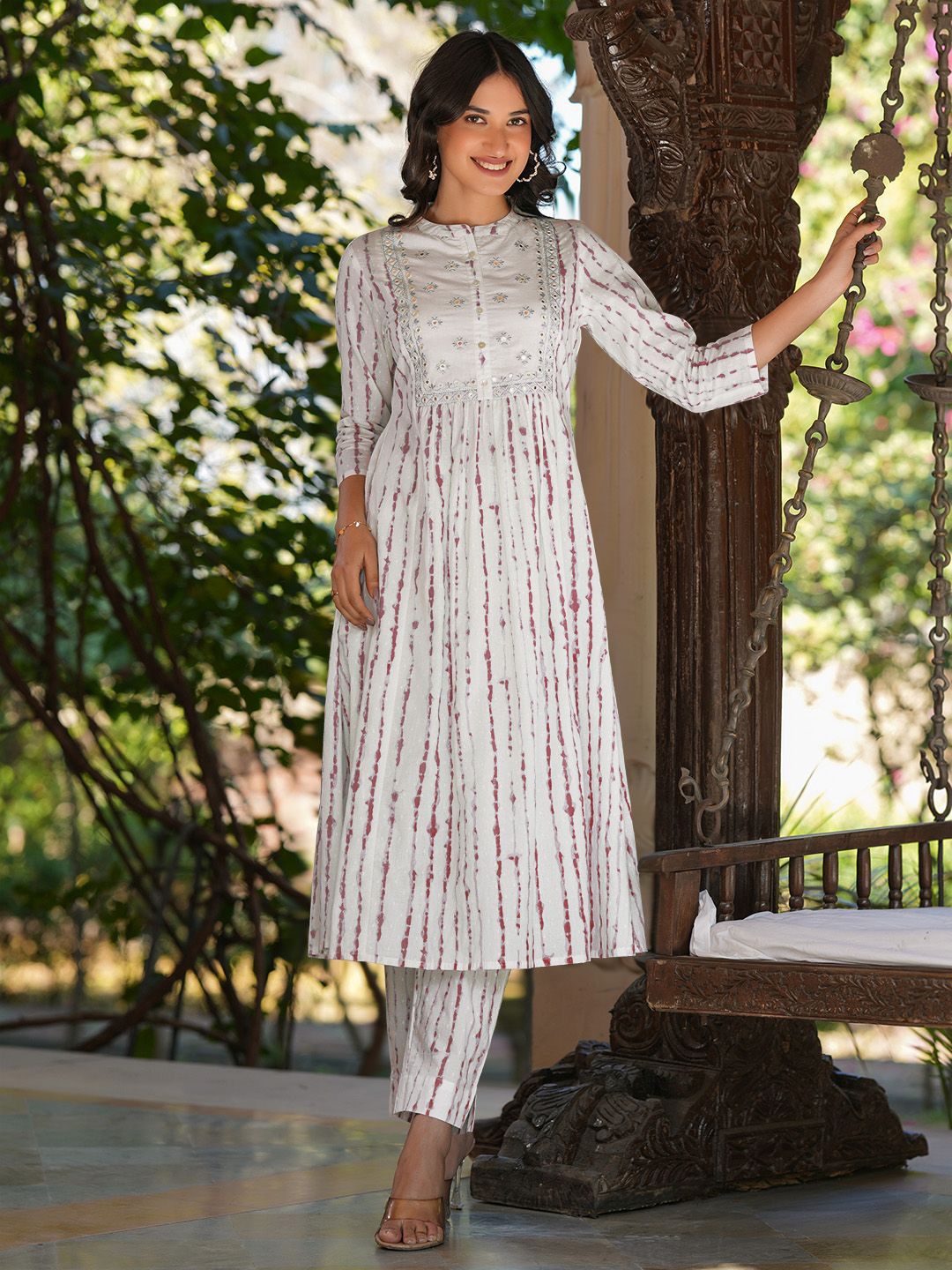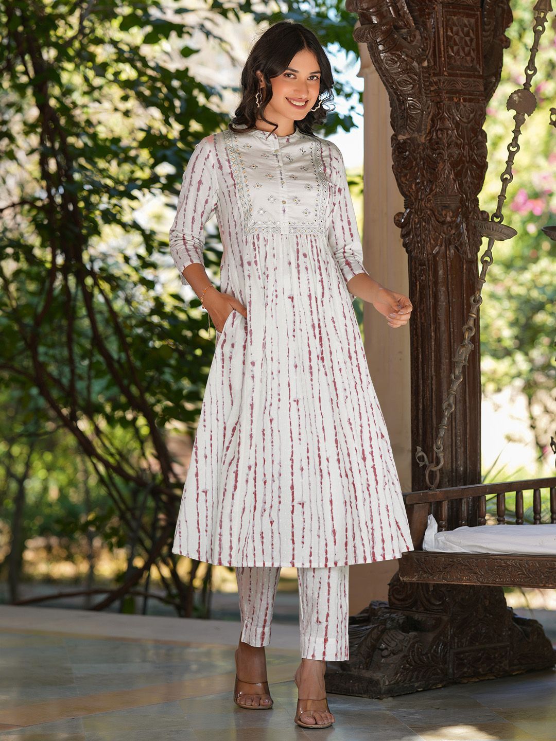 Buy this stylish Janasya Women White Pure Cotton Tie & Dye With Mirror Work A-line Kurta Pant Set at Marincart Nepal. This product offers great quality and value. Perfect for those looking for the latest trends in fashion. Get yours now at unbeatable prices.