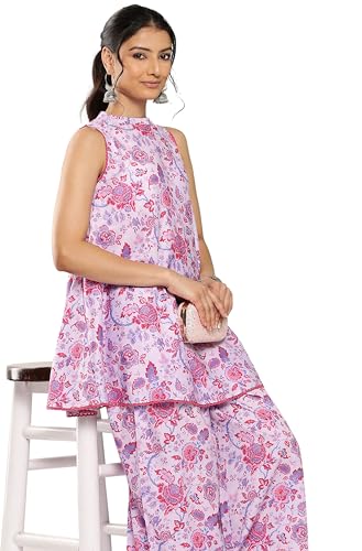 Janasya Women's Lavender Crepe Digital Printed Co-ords Set