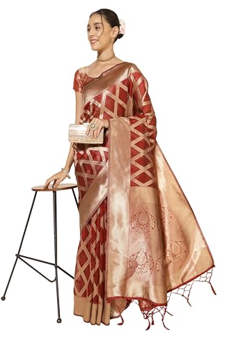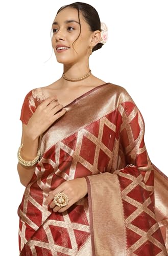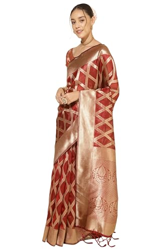 Janasya Women's Organza Saree (SAR233_Maroon)