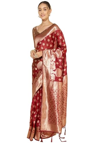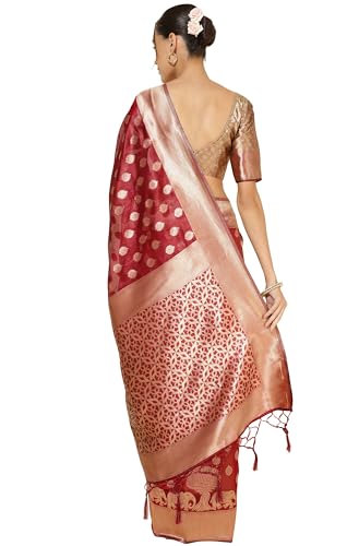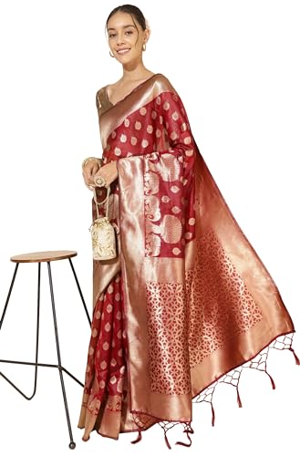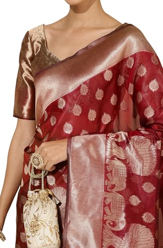 Janasya Women's Organza Saree (SAR246_Maroon)