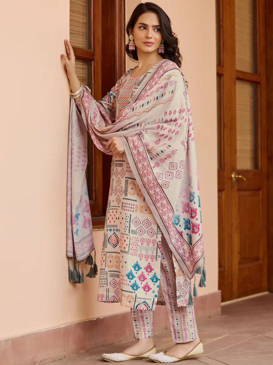 Buy this stylish JAPNAAM Ethnic Motifs Printed Round Neck Pure Cotton Straight Kurta With Trouser & Dupatta at Marincart Nepal. This product offers great quality and value. Perfect for those looking for the latest trends in fashion. Get yours now at unbeatable prices.