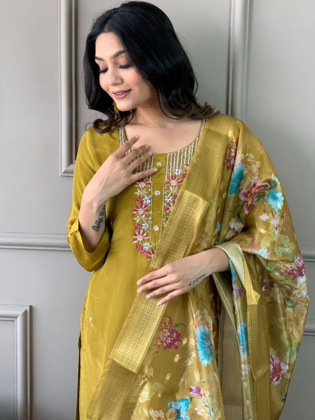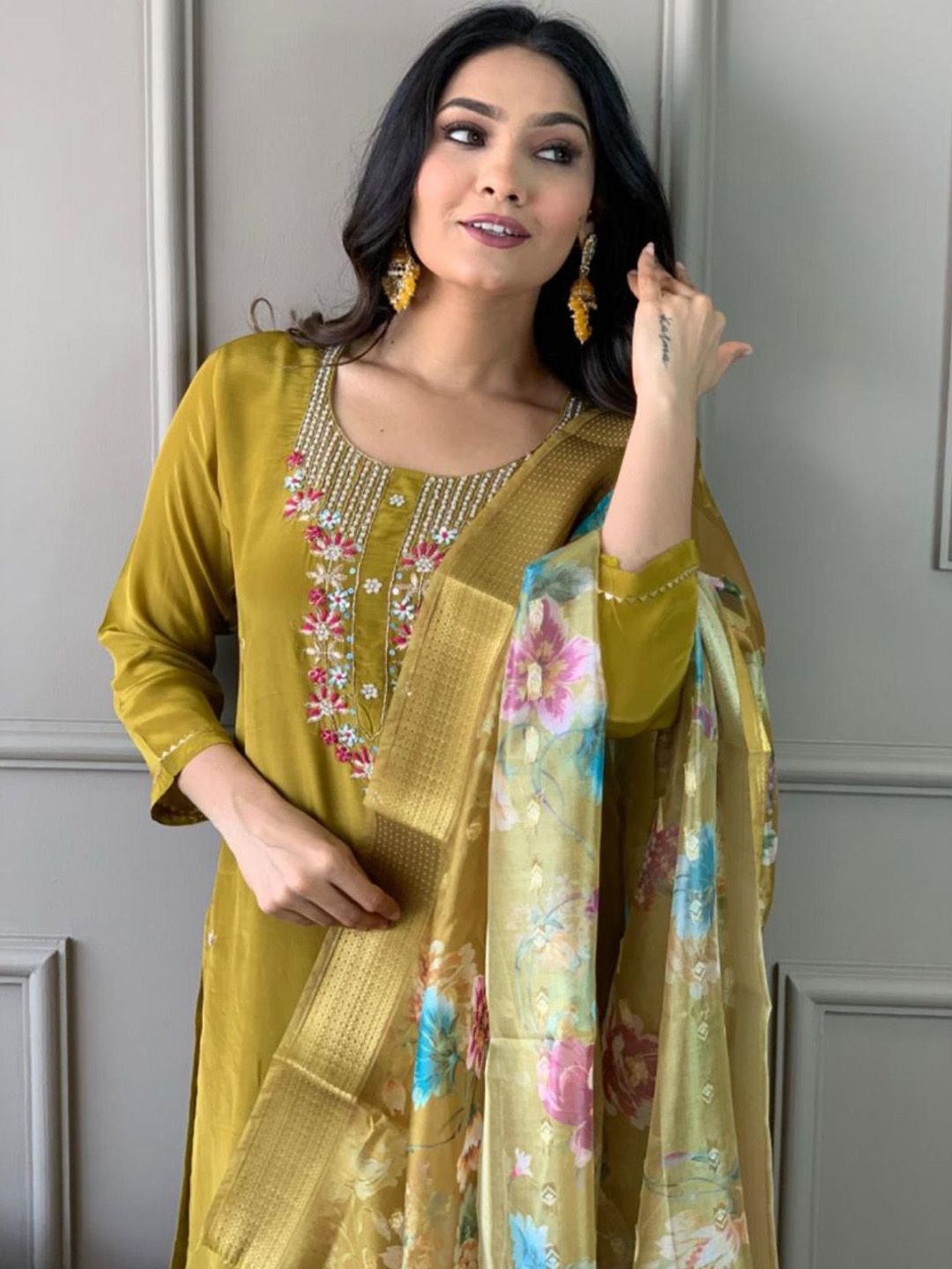 Buy this stylish JAPNAAM Floral Embroidered Thread Work Chanderi Silk Kurta With Trousers & Dupatta at Marincart Nepal. This product offers great quality and value. Perfect for those looking for the latest trends in fashion. Get yours now at unbeatable prices.