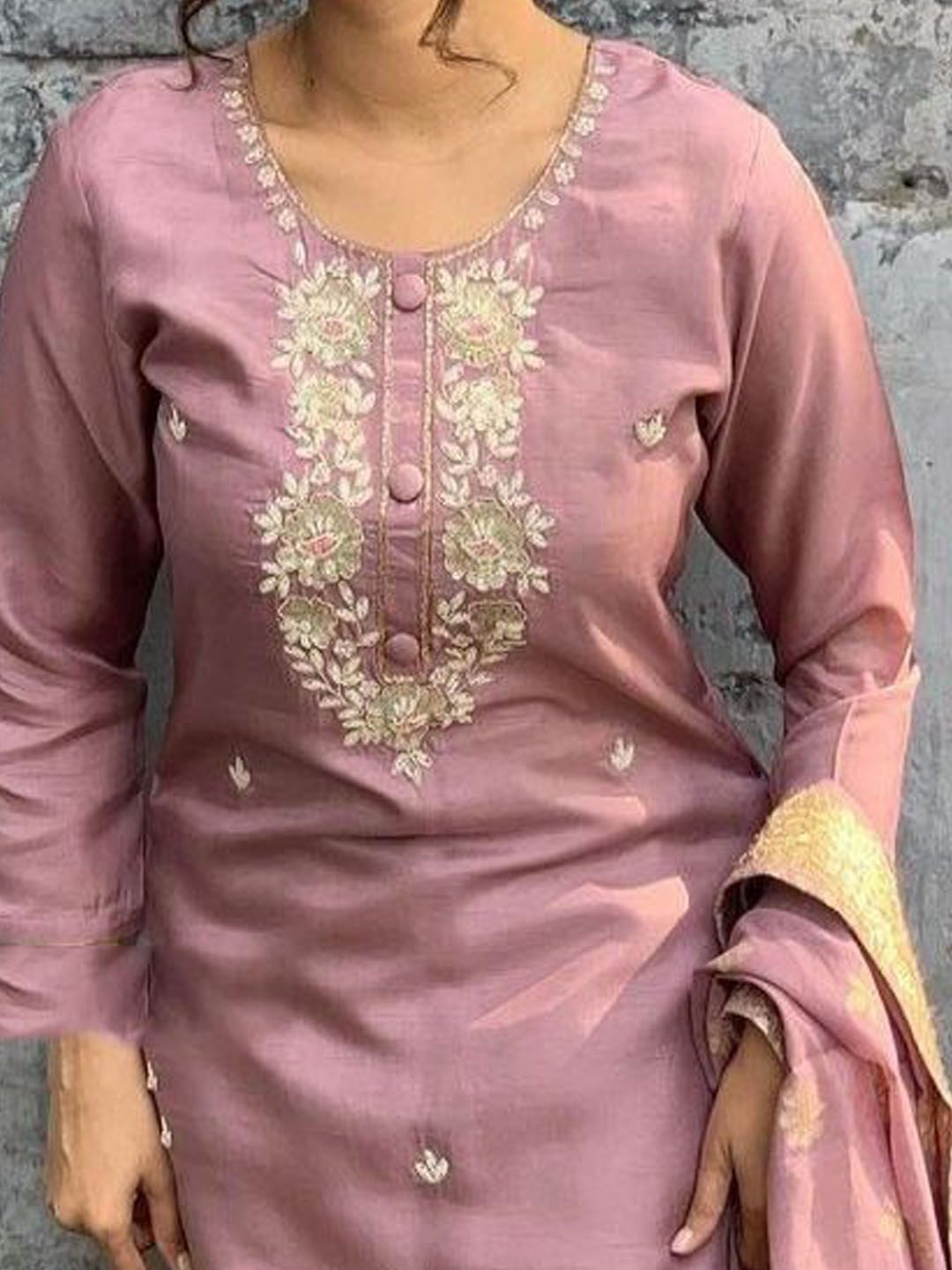 Buy this stylish JAPNAAM Floral Embroidered Thread Work Chanderi Silk Kurta With Trousers & Dupatta at Marincart Nepal. This product offers great quality and value. Perfect for those looking for the latest trends in fashion. Get yours now at unbeatable prices.