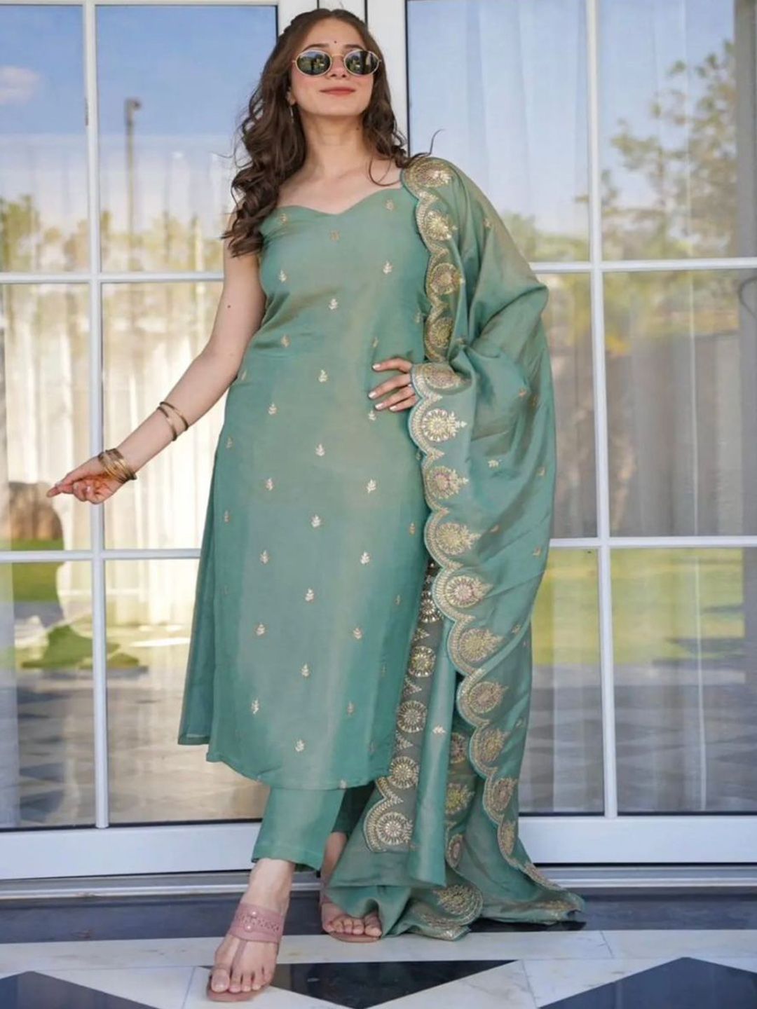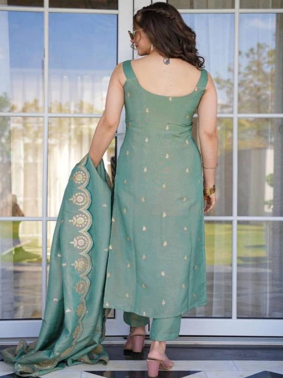 JAPNAAM Women Floral Embroidered Kurta with Trousers & Dupatta