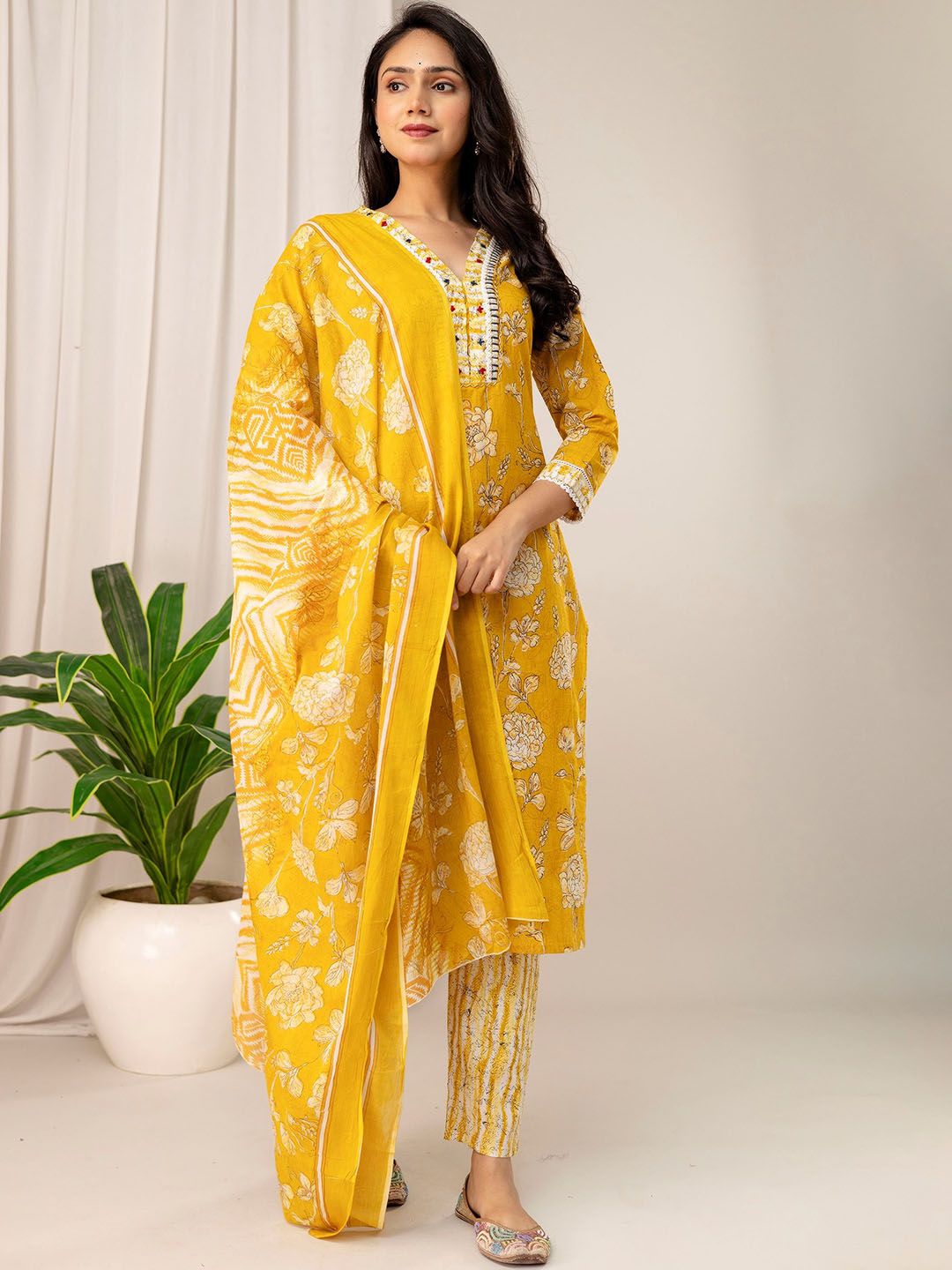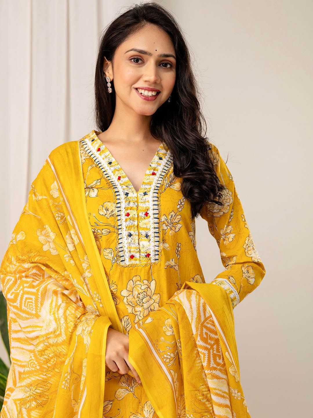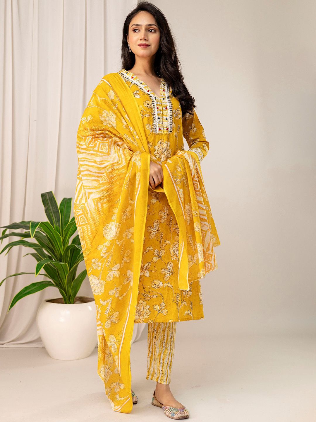 Jasoriya Women Embroidered Pure Cotton Kurta with Trousers & Dupatta