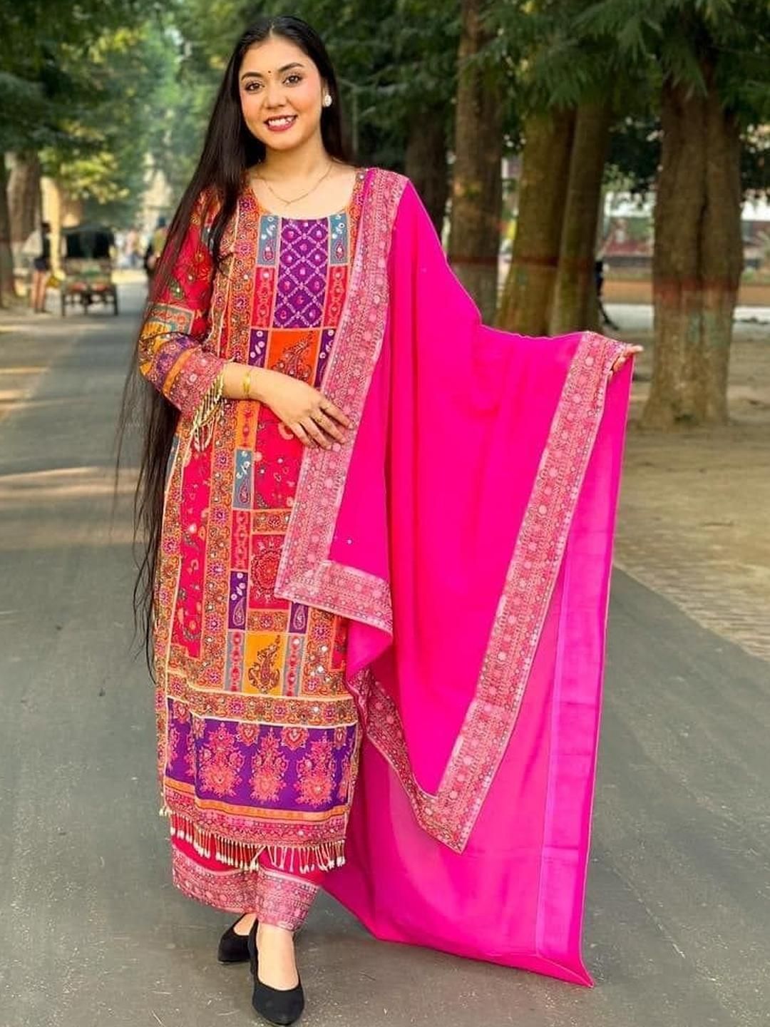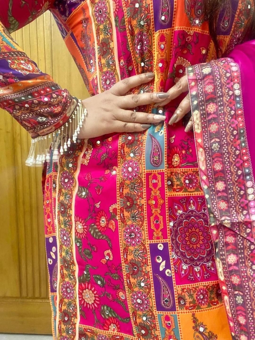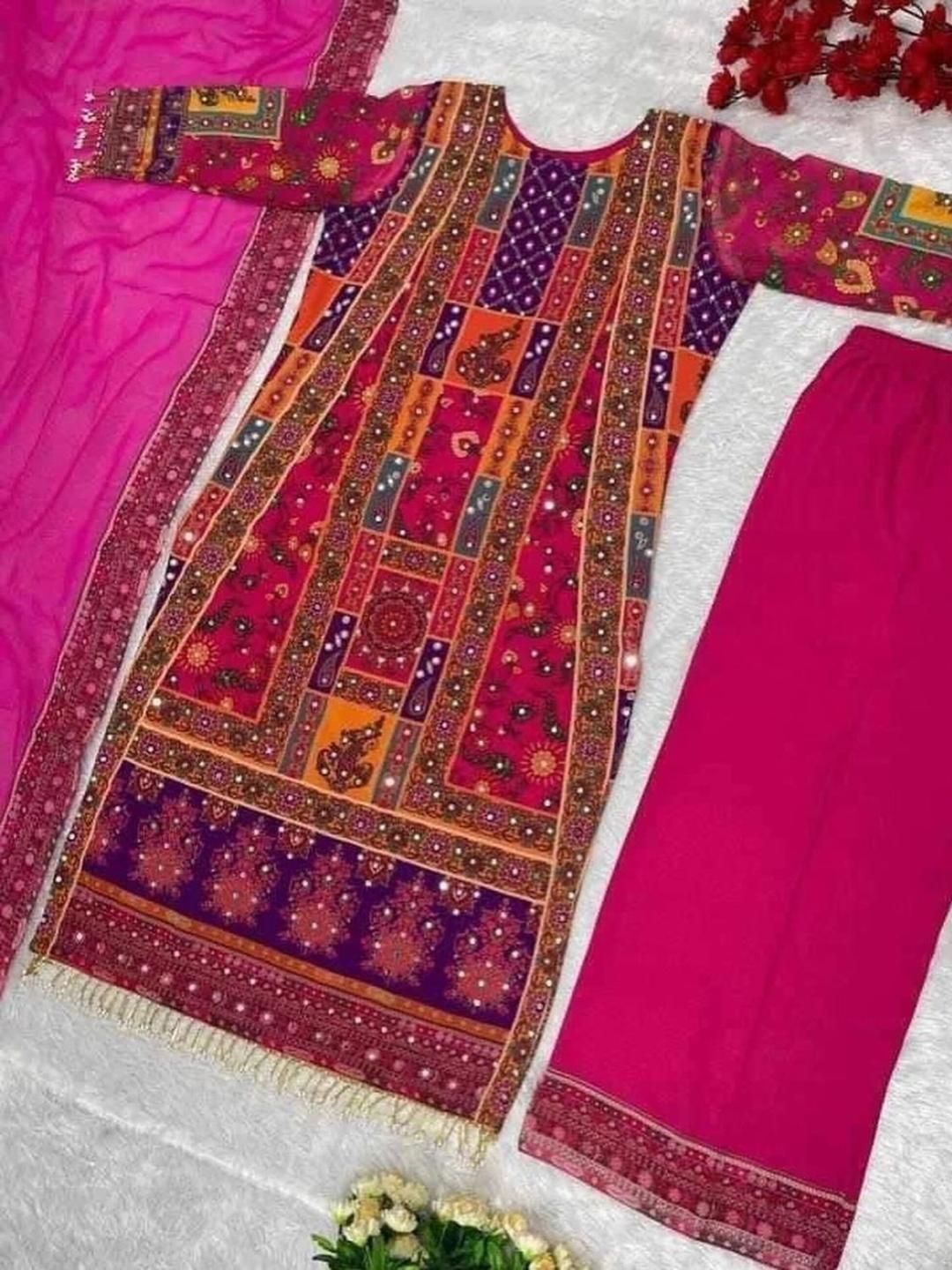 JAY NAGNATH FAB Printed Mirror Work Kurta with Palazzos & Dupatta