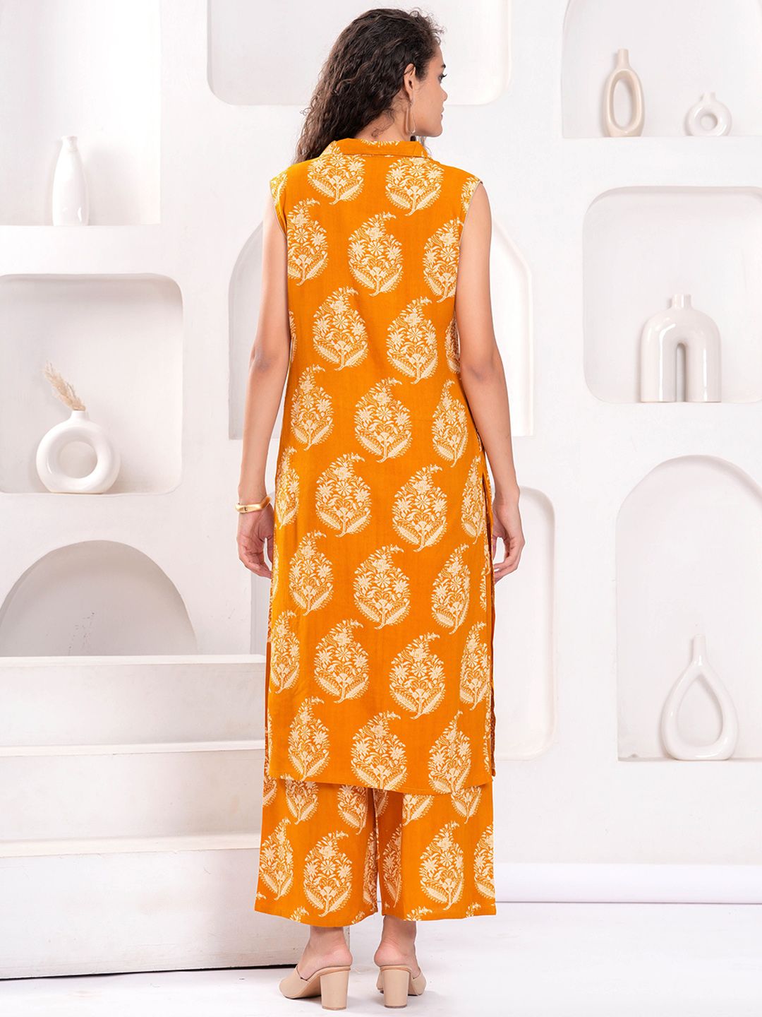 JC4U Women Ethnic Motifs Printed Shirt Collar Regular Straight Kurta with Palazzos