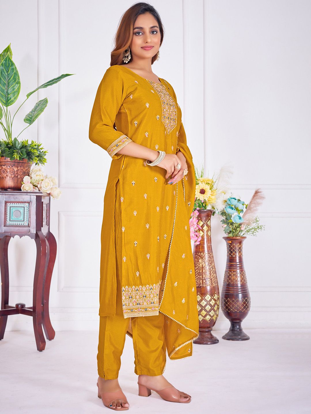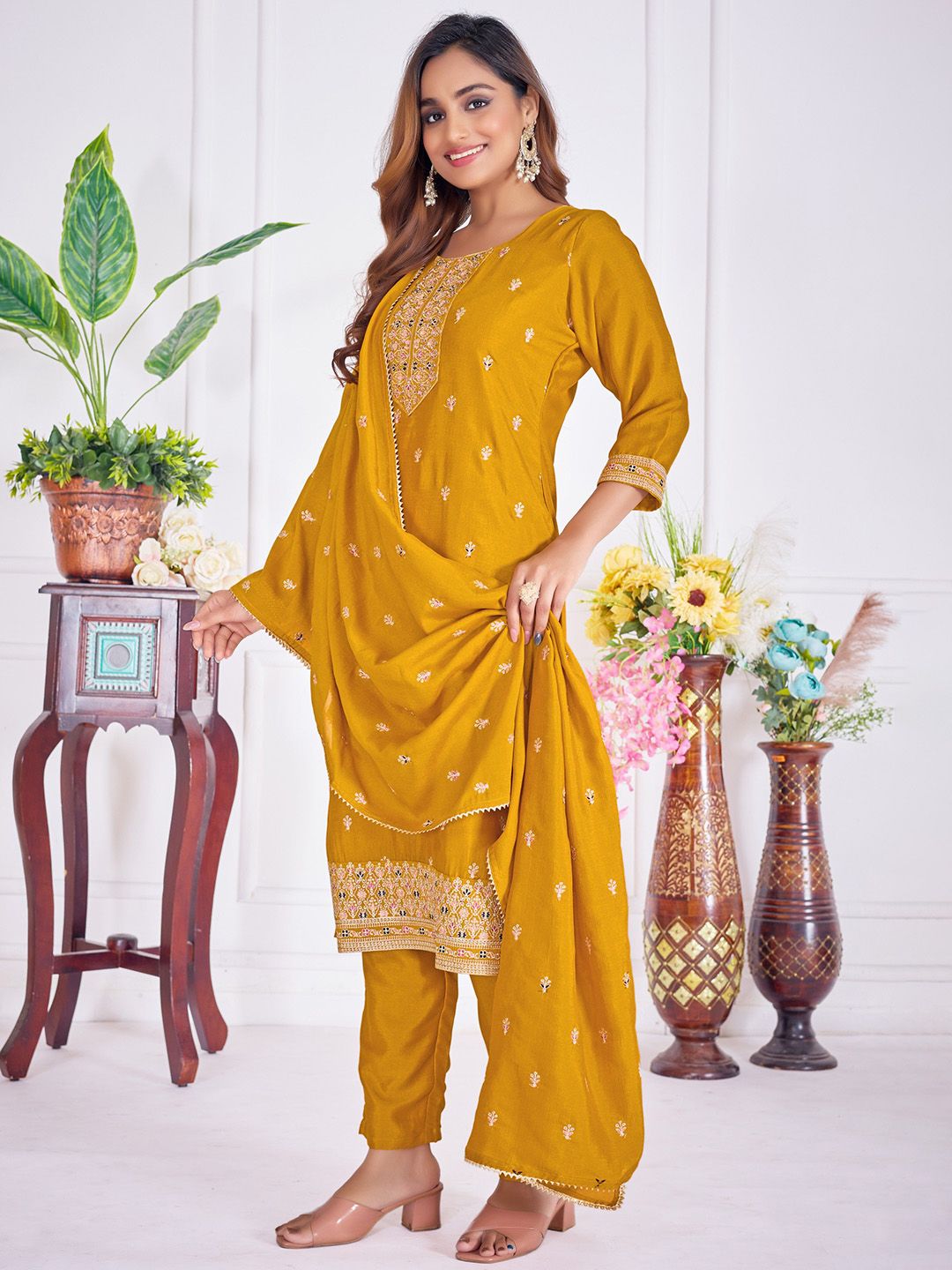 JDS LIFESTYLE Women Ethnic Motifs Printed Kurta with Palazzos & Dupatta