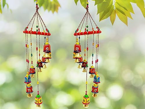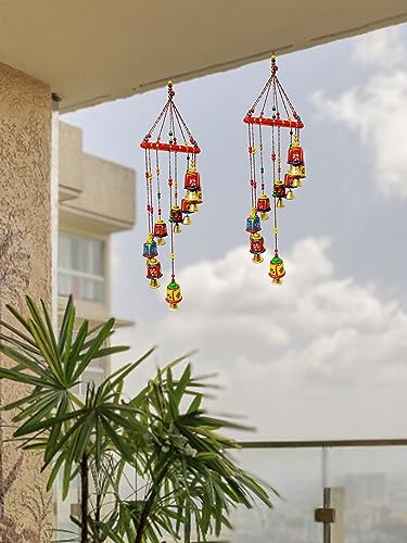 Positive Energy Infusion: These wind chimes are designed to radiate positive energy, bringing tranquility and harmony to your surroundings. Positive Vibes: Wind chimes for home, balcony, and positive energy. Handcrafted Beauty: Each wind chime is meticulously handcrafted, showcasing artisanal craftsmanship that adds a unique touch to your decor. Unique Home Accents: Wind chimes and hanging bells for home decor a stylish aura. Versatile Decoration: Perfect for indoor and outdoor spaces, including balconies, living rooms, main doors, and gardens. Serene Wind Chimes: Elevate home decor with beautiful wind chimes for home. Package Content: Two Piece Handcrafted Rajasthani Colored Bells Door / Wall Hanging Decorative Product Size in CM - 15*15*63 Length*Width*Height) Stunning Design: Our wind chimes feature a captivating design that combines Rajasthani influences with modern aesthetics. Balcony Delights: Wind chimes for positive energy and elegant home decor. Durable and Long-Lasting: Built to withstand various weather conditions, ensuring they remain a cherished part of your decor for years. Harmonious Home: Wind chimes and hanging bells for tranquil vibes. Thoughtful Gift: Share the joy by gifting these wind chimes, ideal for housewarmings, Diwali celebrations, door decoration items hanging, and more. Elegance in Motion: Wind chimes for balcony and home decor.
