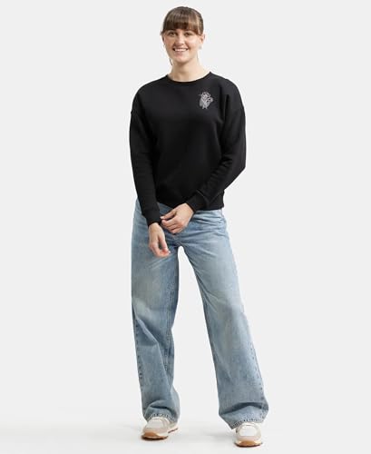Jockey U109 Women's Super Combed Cotton Rich Fleece Fabric Printed Sweatshirt with Drop Shoulder Styling