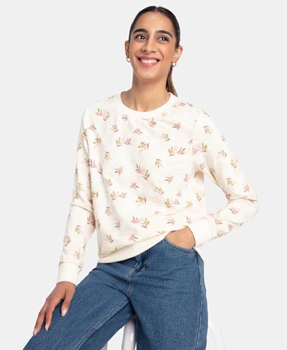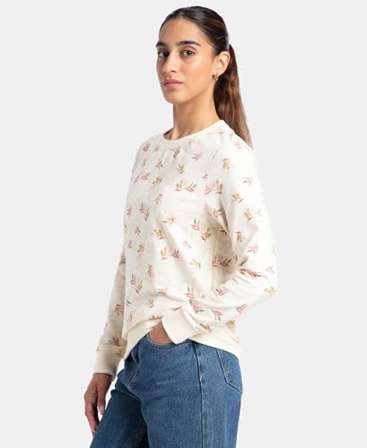 Jockey Women's Super Combed Cotton Crew Neck AW68 Elastane Stretch French Terry Fabric Printed Sweatshirt with Ribbed Cuffs