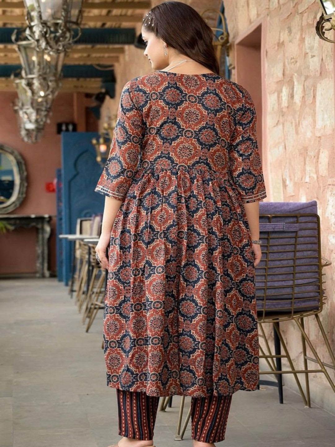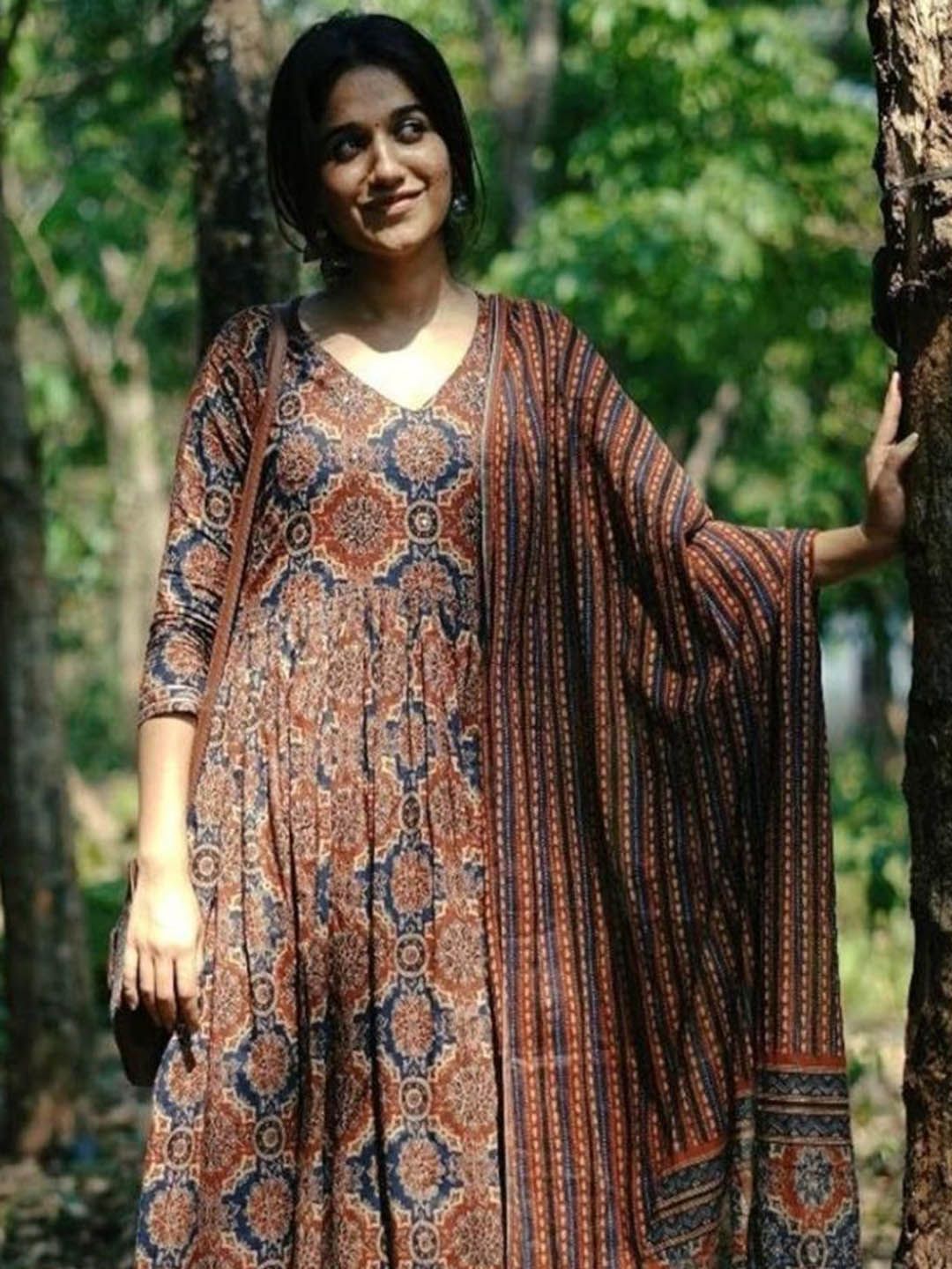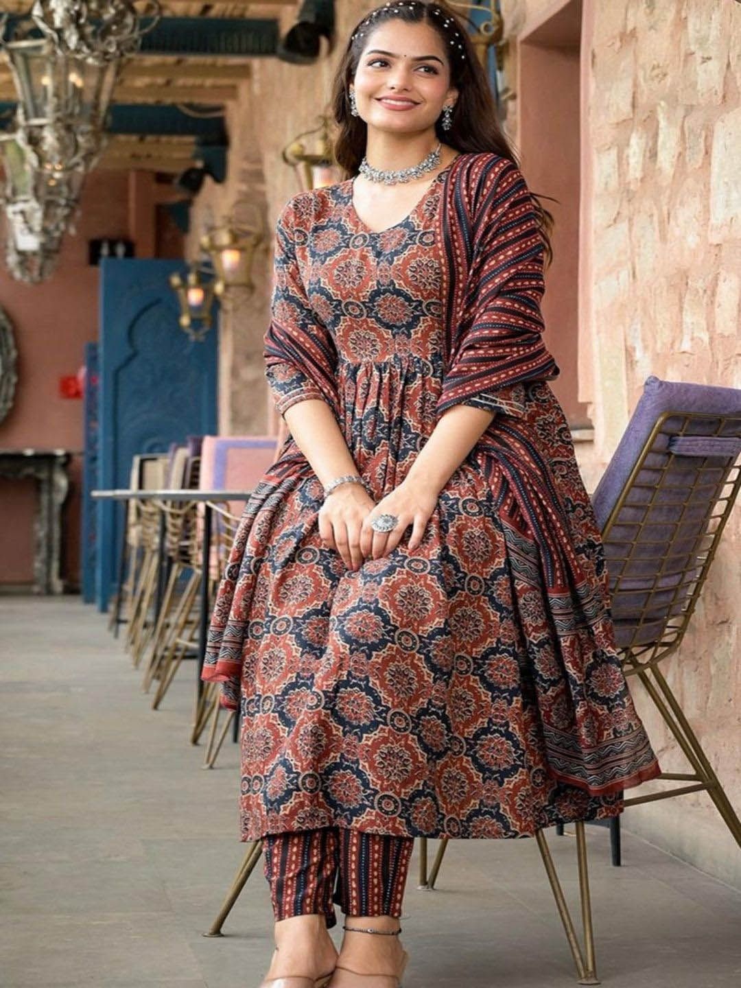 JODAA Ethnic Motifs Printed Anarkali Kurta With Trousers & Dupatta