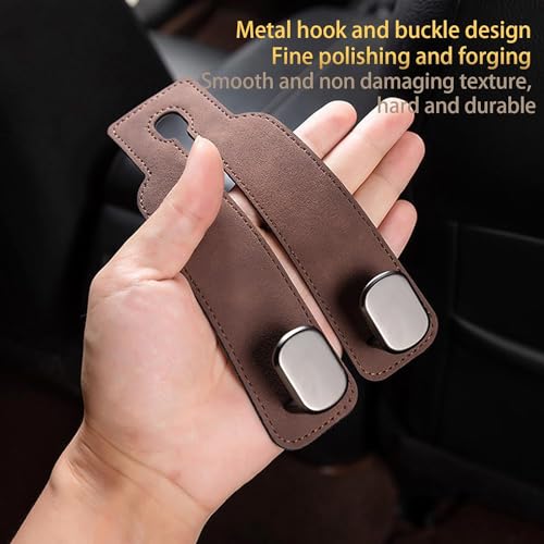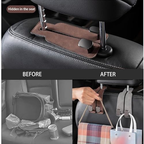 Versatile car seat back hook: This car seat back hook is not only a convenient storage space for groceries, clothes, handbags, hats, and more, but also a practical mobile phone holder. Its soft leather headrest hook fits perfectly with your car seat, adding functionality to your vehicle interior High quality materials: Made with high-quality materials, this car seat back hook is durable and stylish, complementing any car interior. The hook can be easily bent to fit various car seats, ensuring its versatility and long-lasting performance Save space in your car: With double hooks and a phone holder, this multifunctional car seat back hook allows you to easily organize your belongings and keep your phone within reach. Say goodbye to clutter and make your journey more enjoyable and stress-free Easy installation and removal: Installing and removing this car seat back hook is a breeze! No need to remove the headrest or use any tools. Simply install it directly and enjoy the convenience it brings. Suitable for most cars, suvs, and trucks Wide range of applications: Whether you're in the front row or rear row of your car, this versatile car seat back hook and mobile phone holder can be easily installed, providing flexible storage options for your belongings. Keep your bags and phone within reach wherever you go