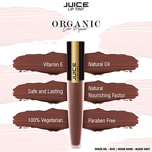 Vitamin E, Natural Oil, Paraben Free, Natural Nourishing Factor, Shea Butter, Safe & Lasting, 100% Vegetarian Organic Colour Pigment Skin Friendly Long Lasting upto 12 hours Soft and smooth texture liquid lipstick with a velvet matte finish Long sponge applicator provides a precise application and a flawless coverage