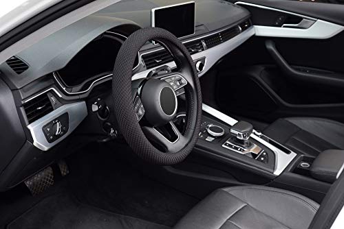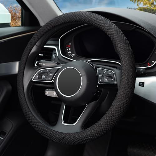 KAFEEK Microfiber Steering Wheel Cover, Universal 15 Inch, Viscose, Anti-Slip, Odorless, Black