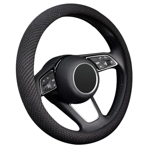 Suitable for all middle-size steering wheels with diameter 14 1/2 inch to 15 inch(37cm to 39cm). Made of durable microfiber breathable ice silk ,bring you a cool touch and feel.Healthy and Eco-friendly. Sweatproof and Anti-skidding, stable, heat resistant, A better grip on the steering wheel gives you more control on the road. Perfect decor for your car, also protect your steering wheel. Easy to Install,Because of the ductility material, Any adult can easy install this steering wheel cover, no tools required