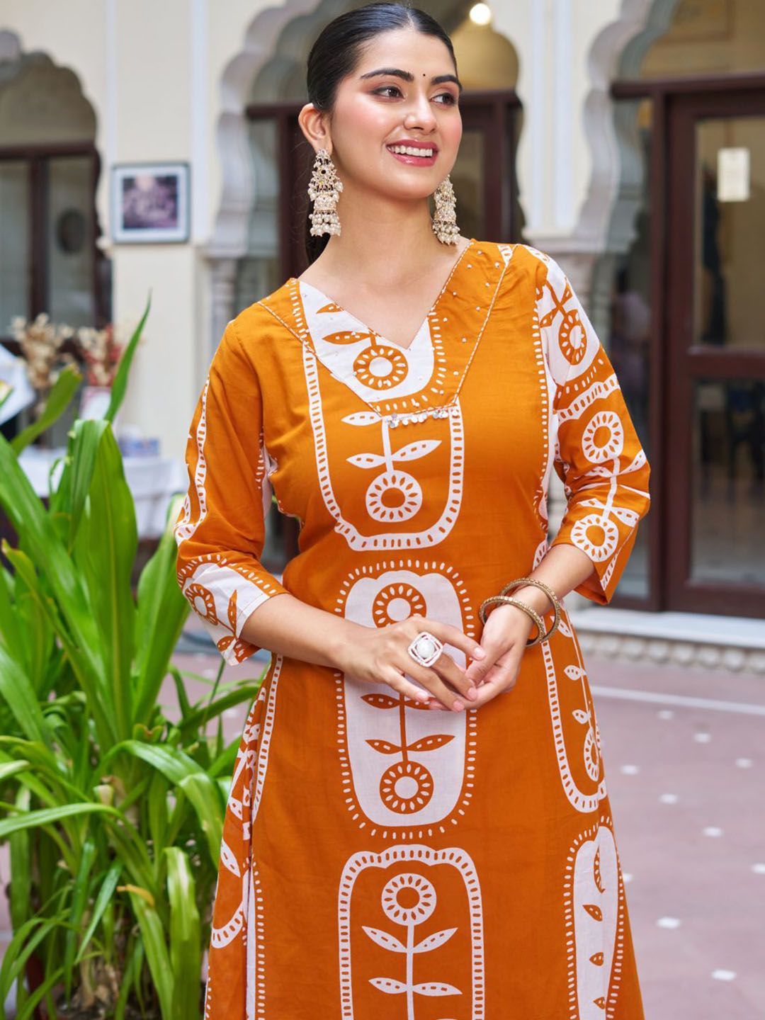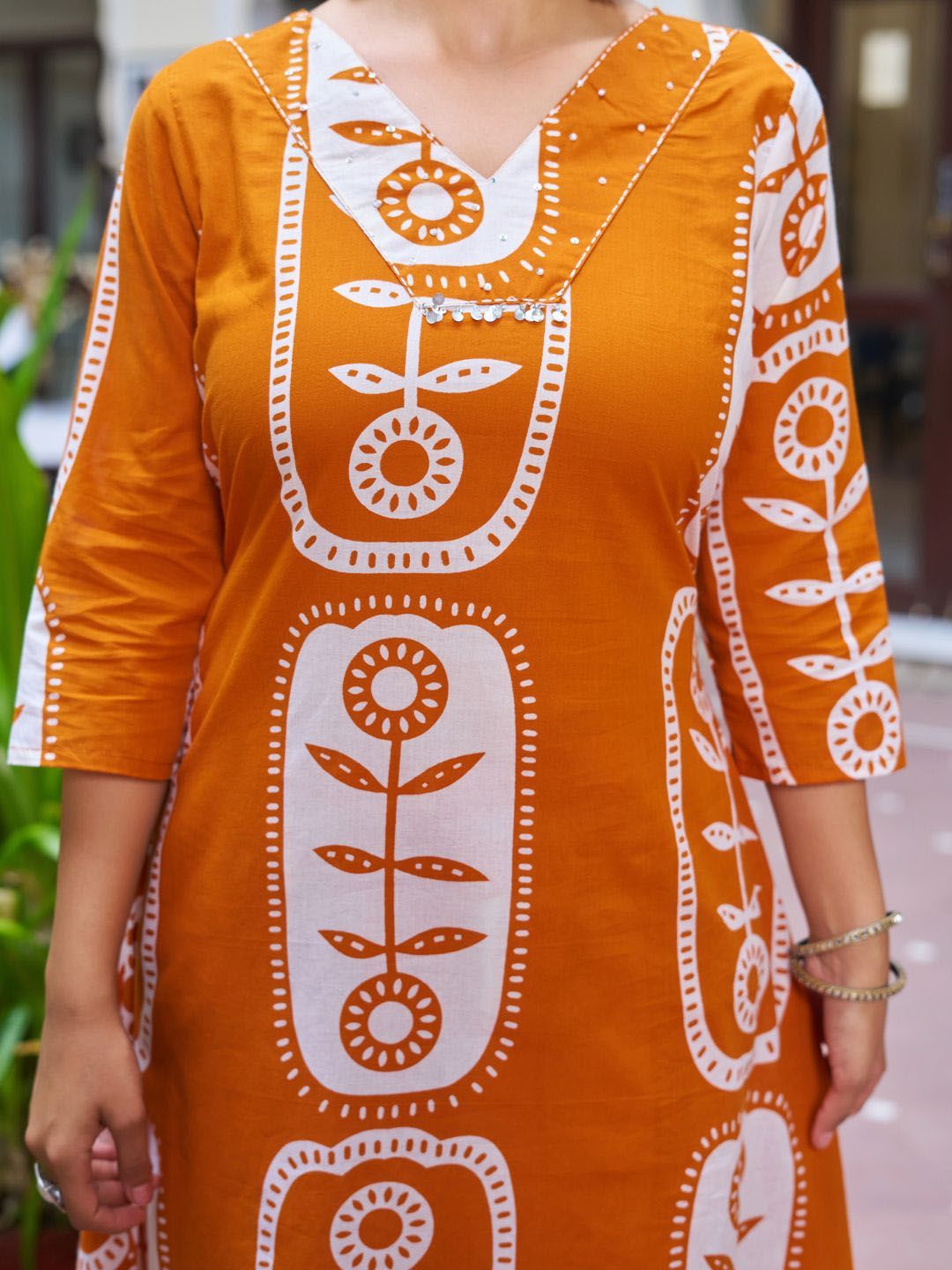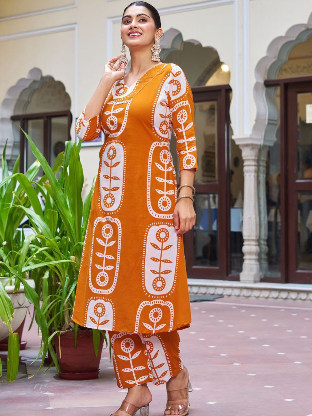 Kaftanize Floral Printed V-Neck A-Line Kurta With Palazzo