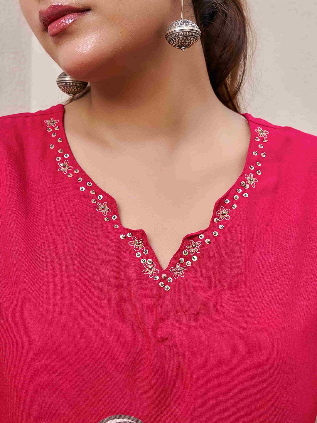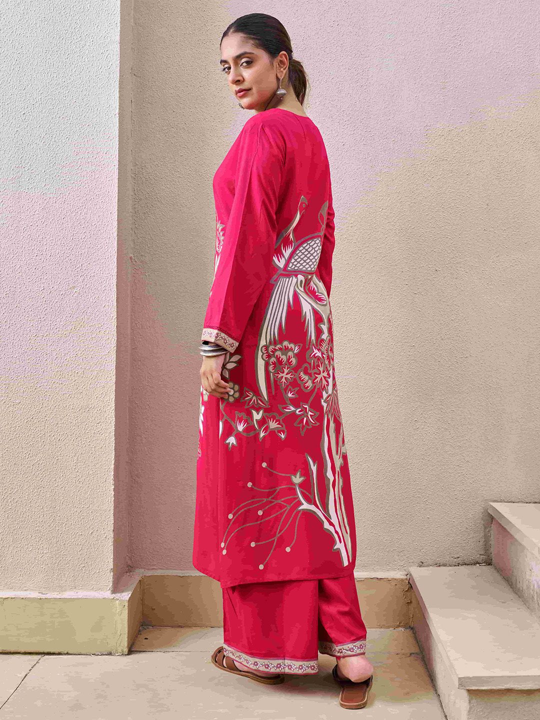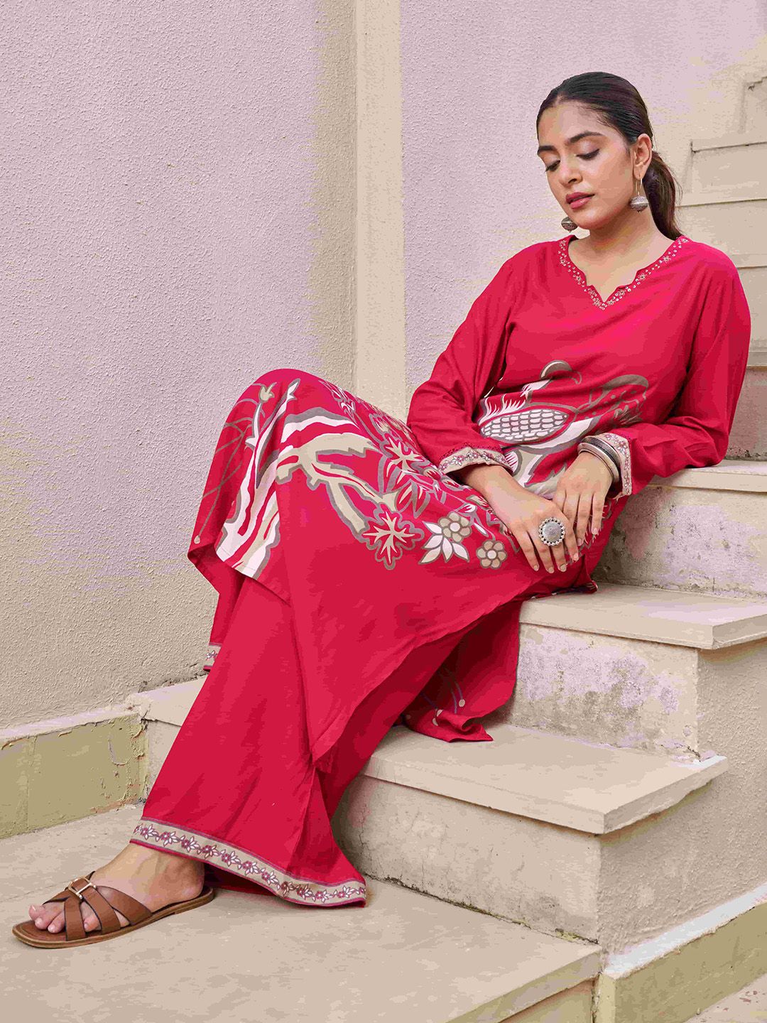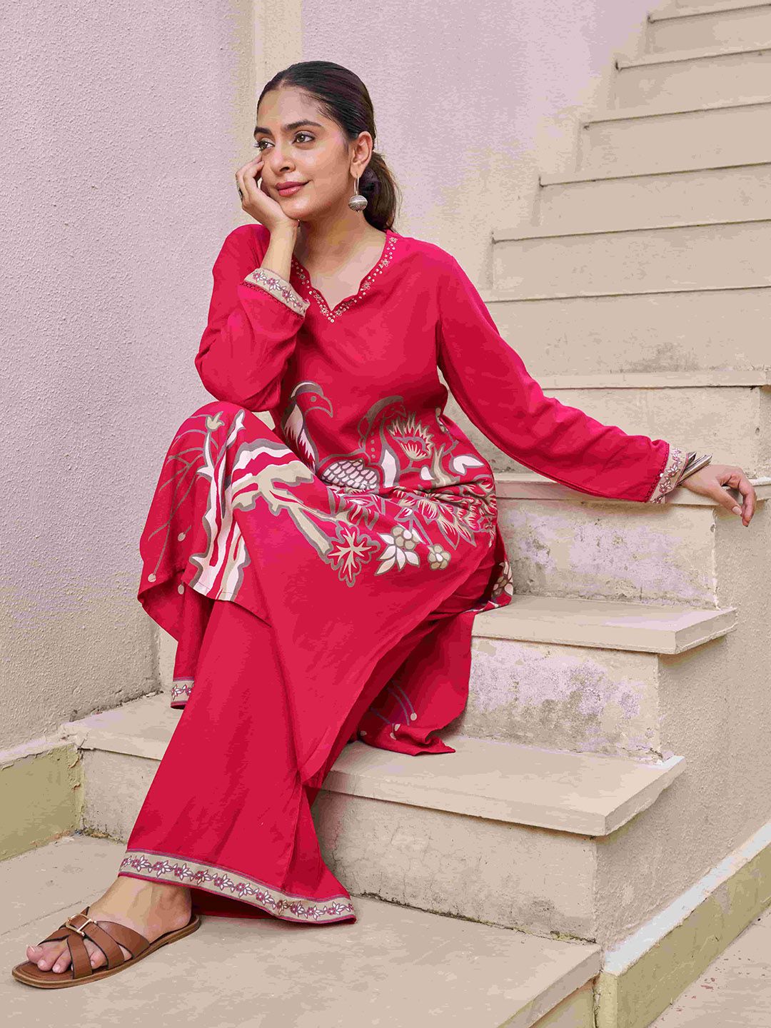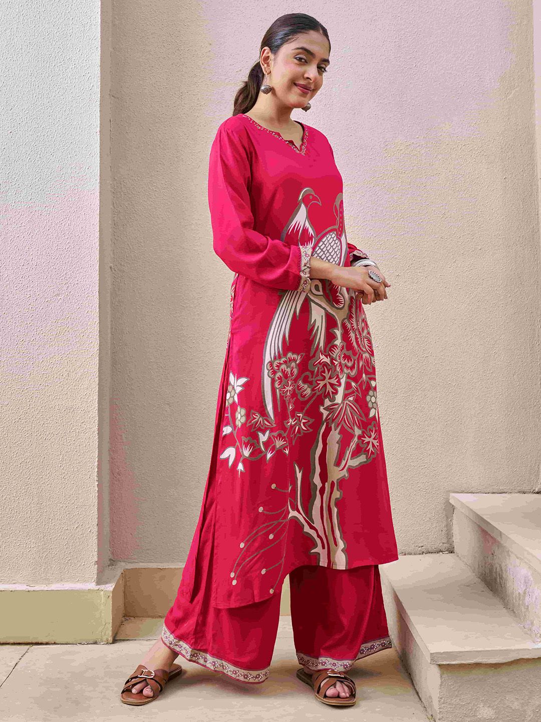 KALINI Animal Printed V-Neck Sequinned A-Line Kurta With Palazzos