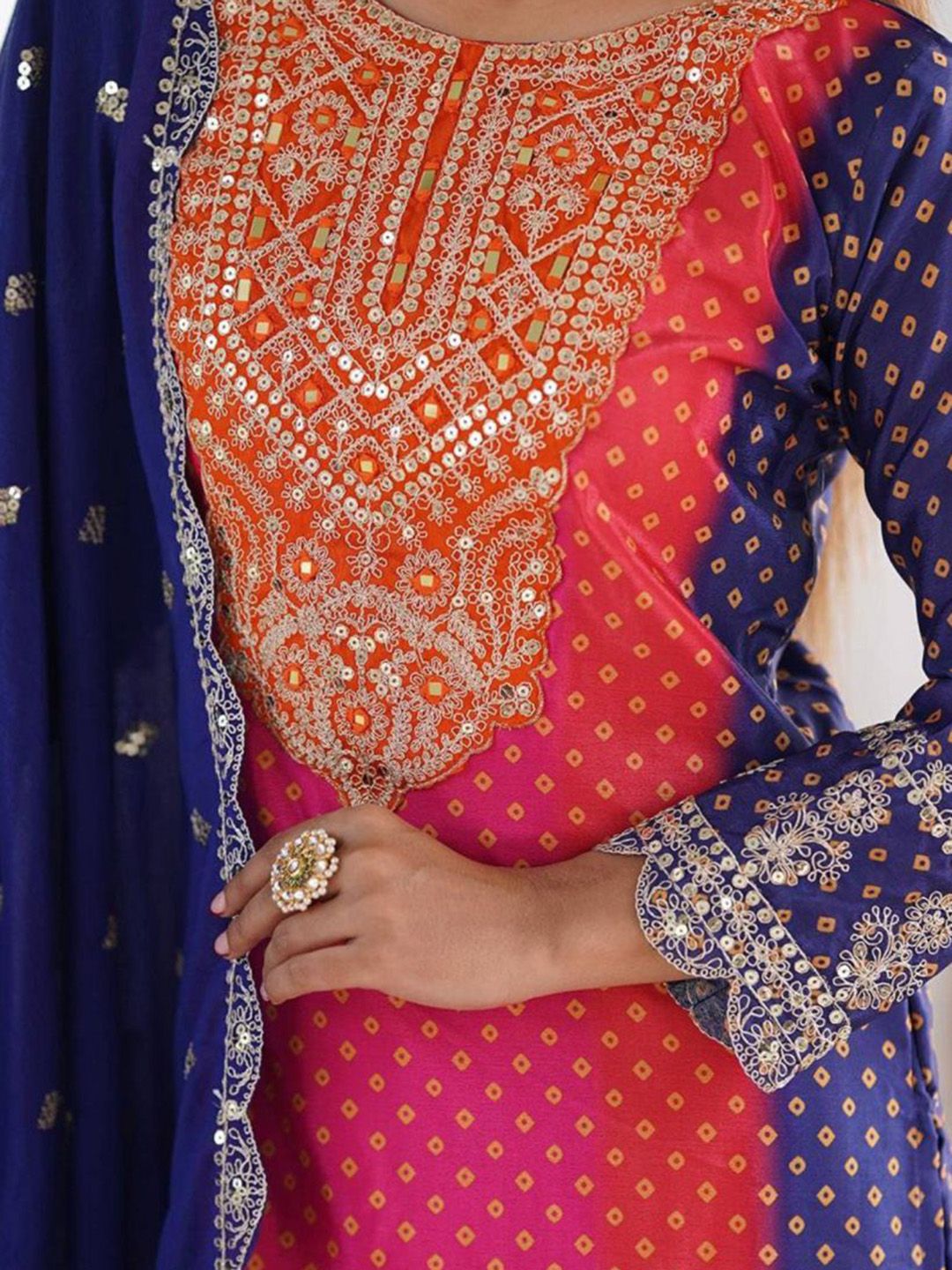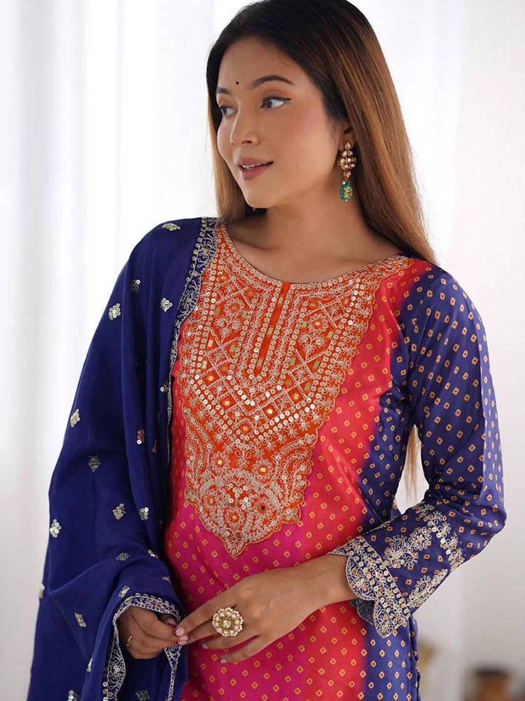 Buy this stylish KALINI Bandhani Embroidered Straight Thread Work Kurta With Trouser & Dupatta at Marincart Nepal. This product offers great quality and value. Perfect for those looking for the latest trends in fashion. Get yours now at unbeatable prices.