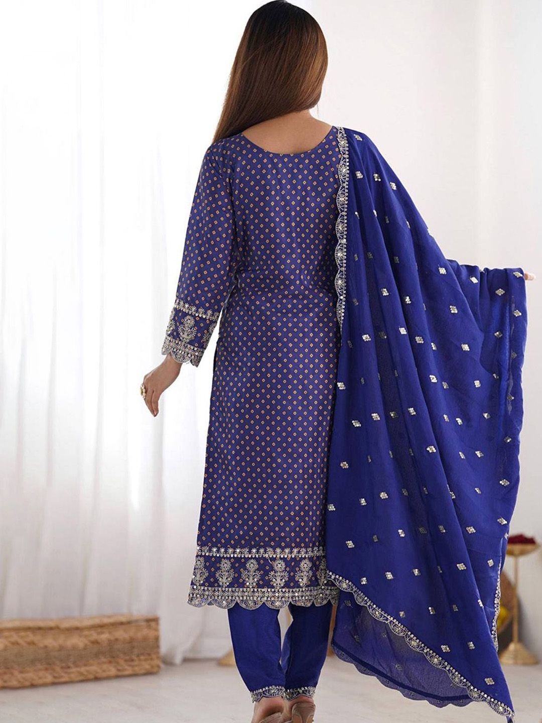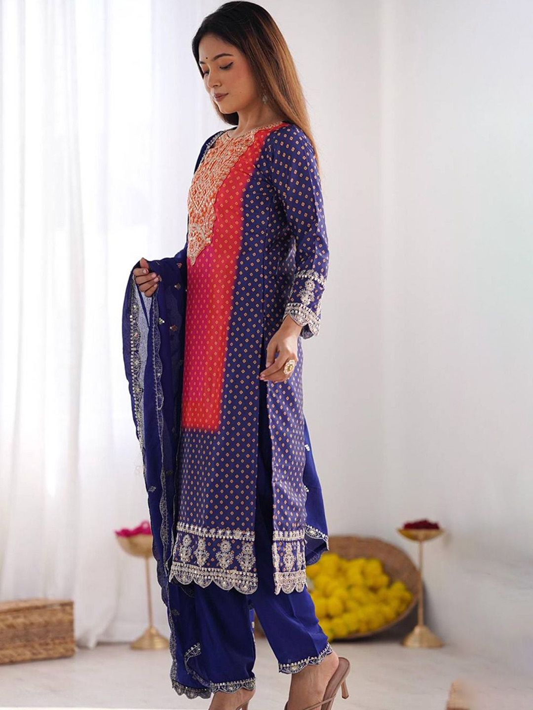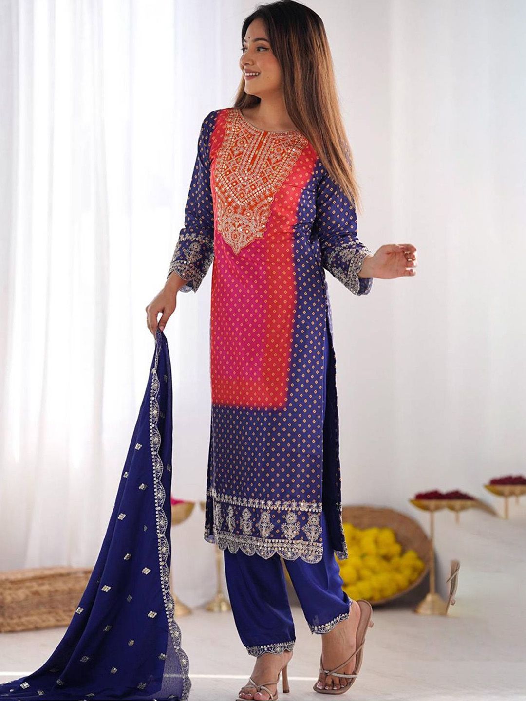 KALINI Bandhani Embroidered Straight Thread Work Kurta With Trouser & Dupatta