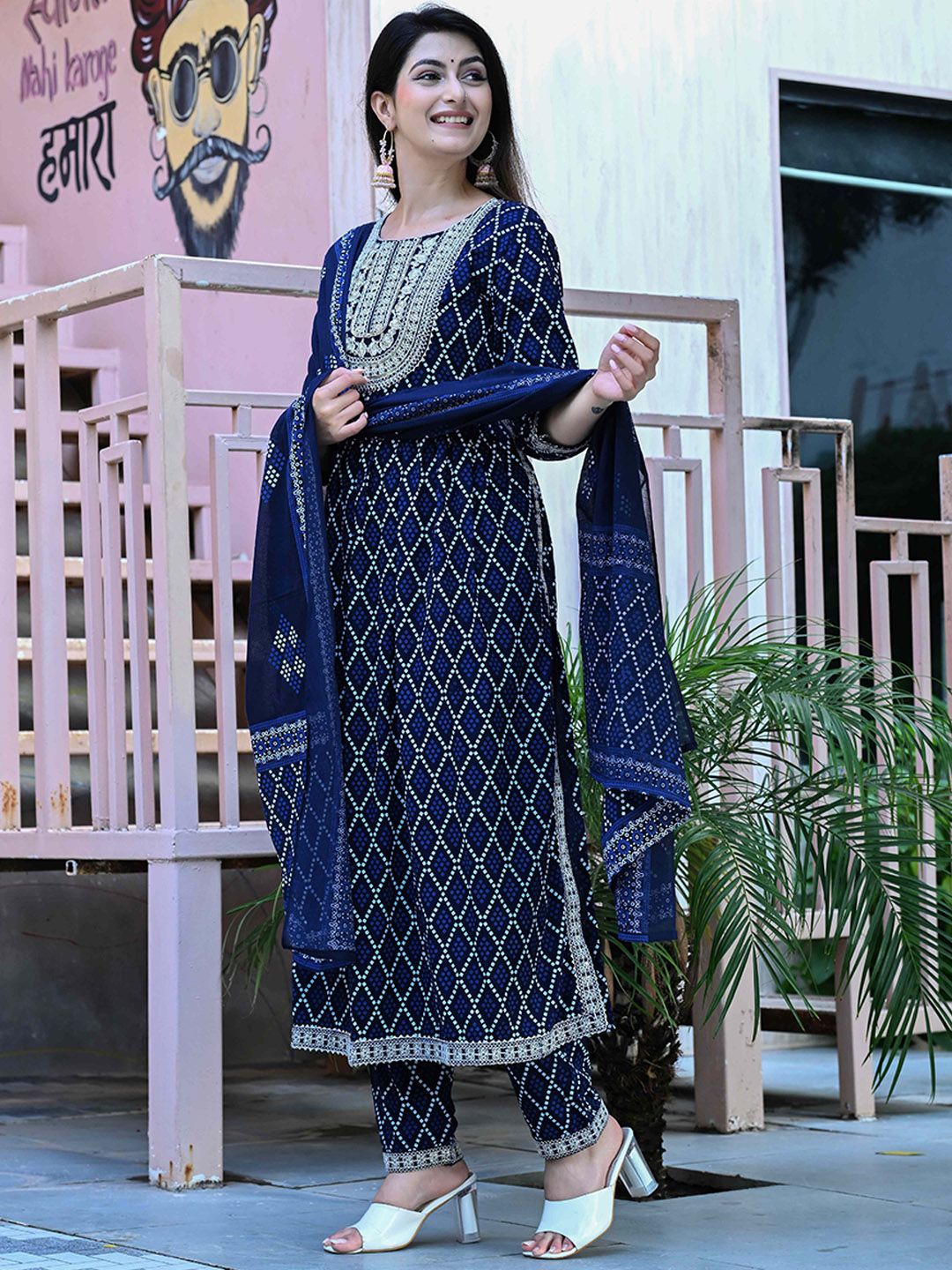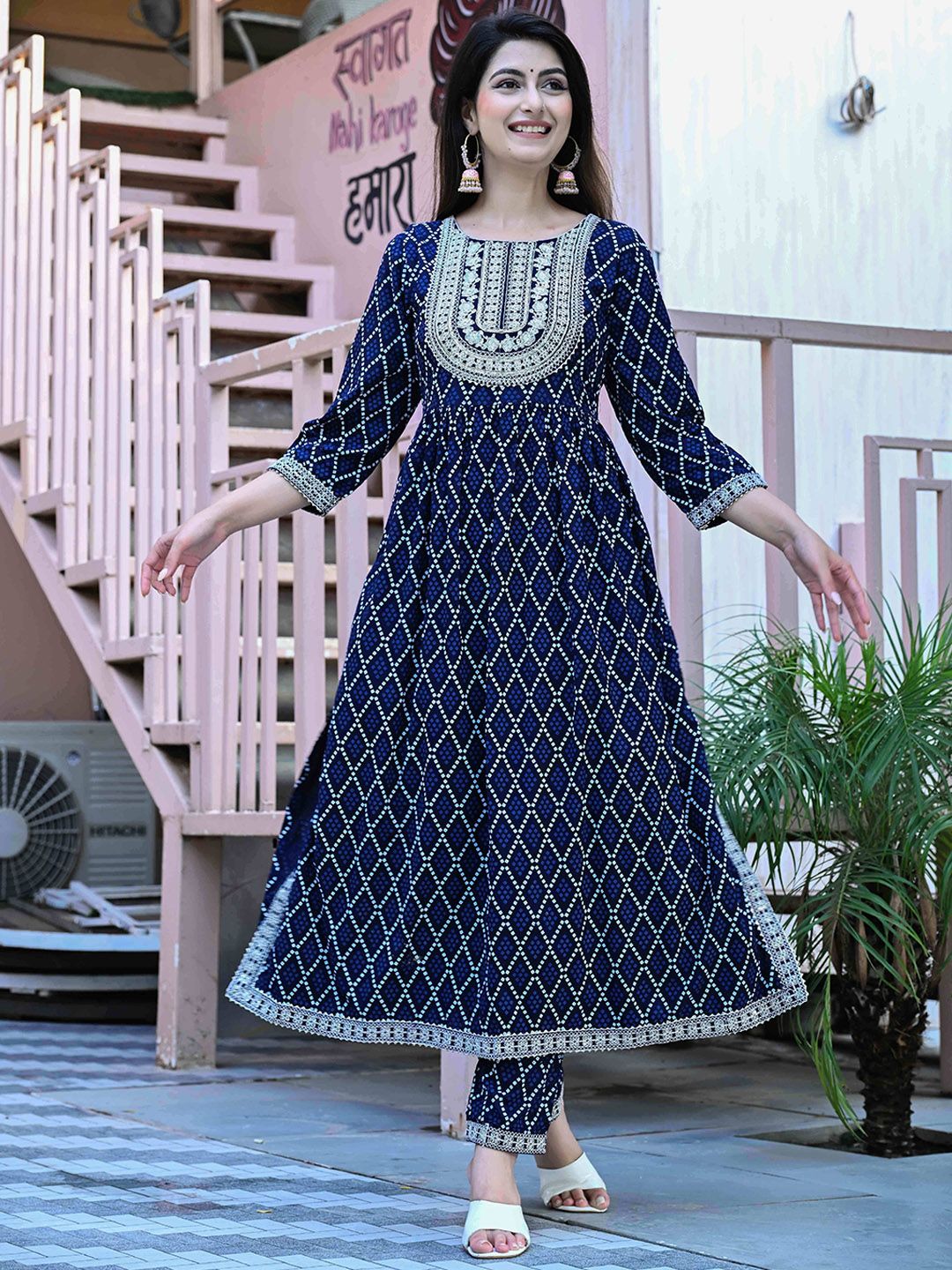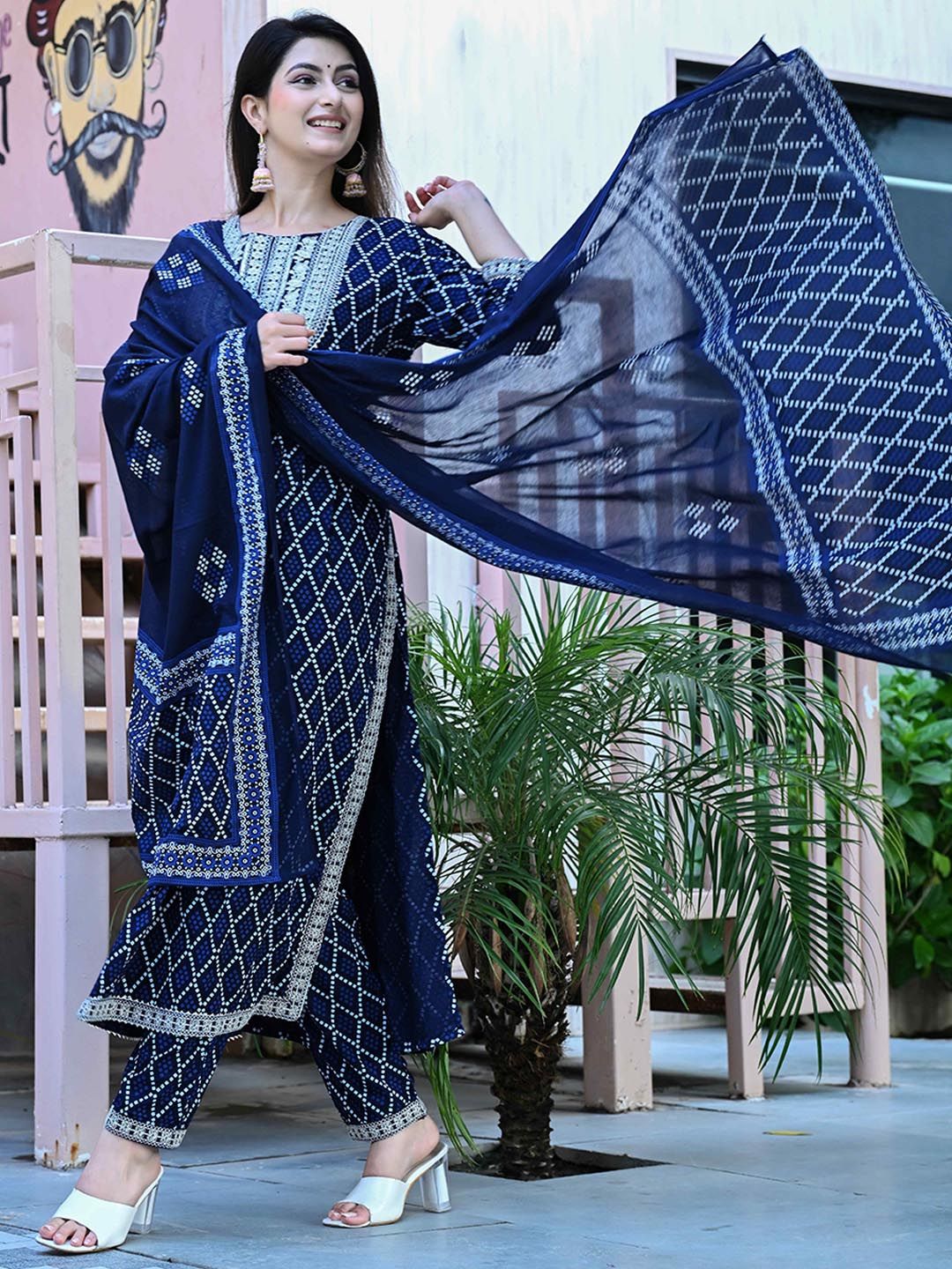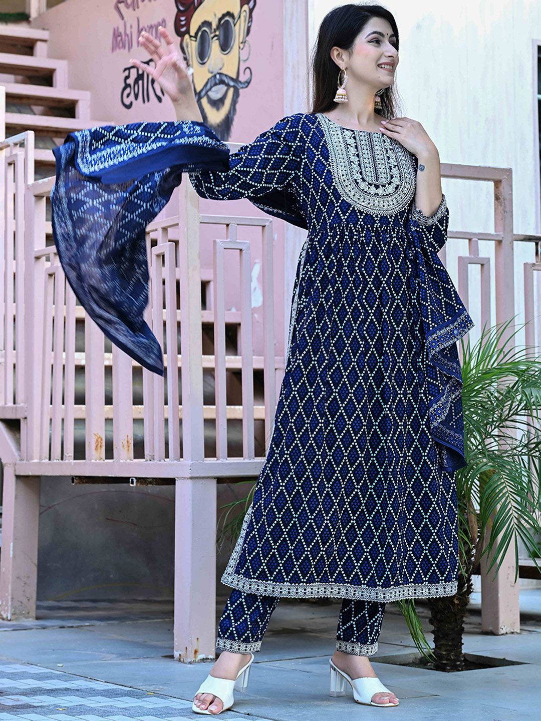 Buy this stylish KALINI Bandhani Printed Round Neck Sequinned Anarkali Kurta With Trousers & Dupatta at Marincart Nepal. This product offers great quality and value. Perfect for those looking for the latest trends in fashion. Get yours now at unbeatable prices.