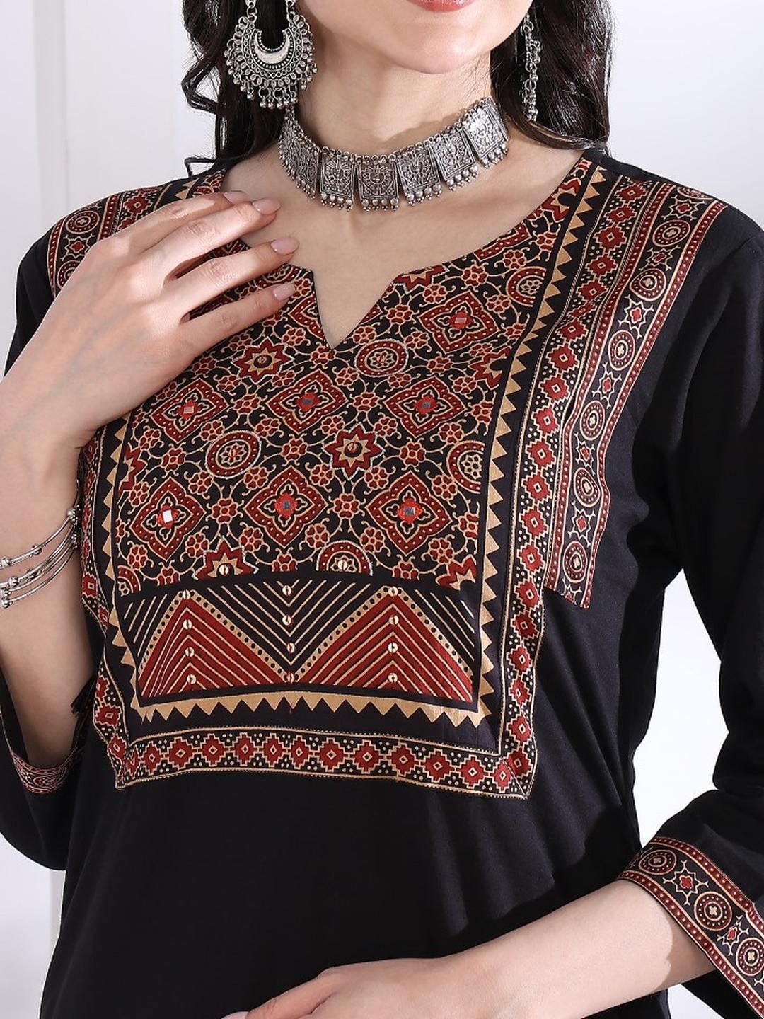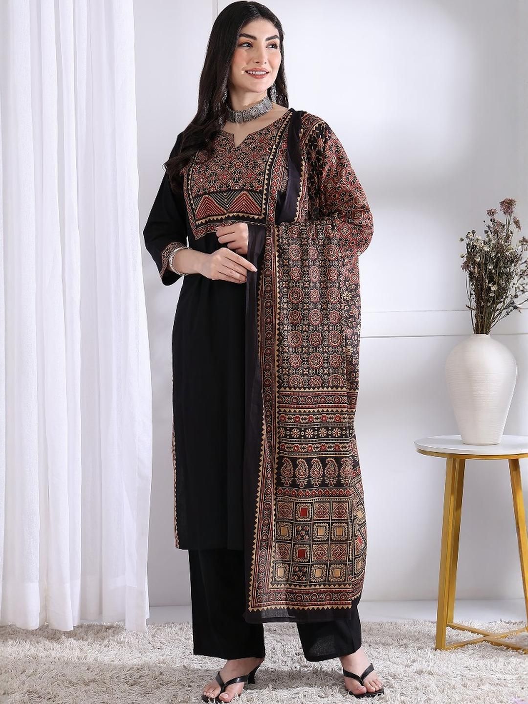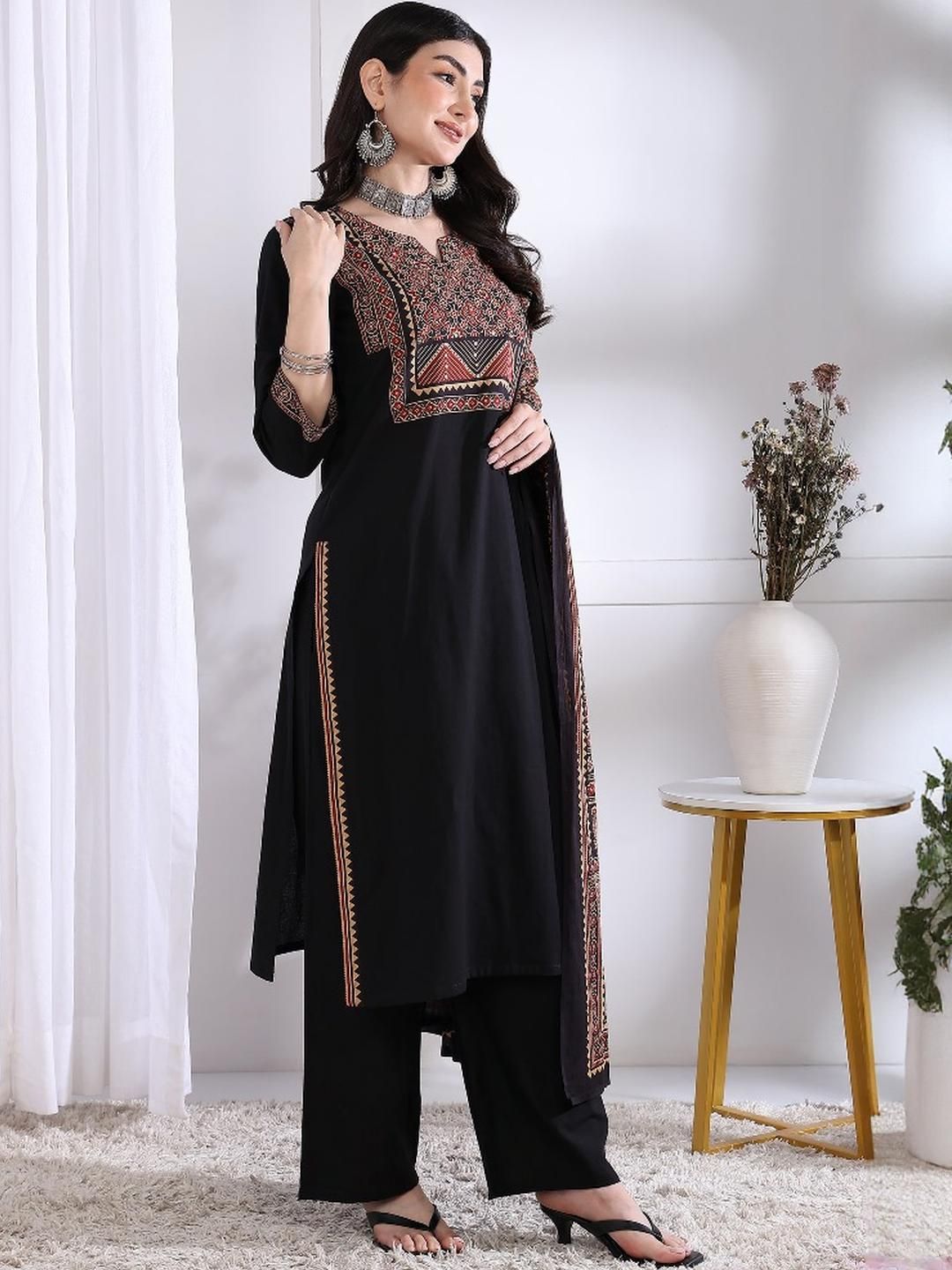 KALINI Black Pure Cotton Kurta Sets