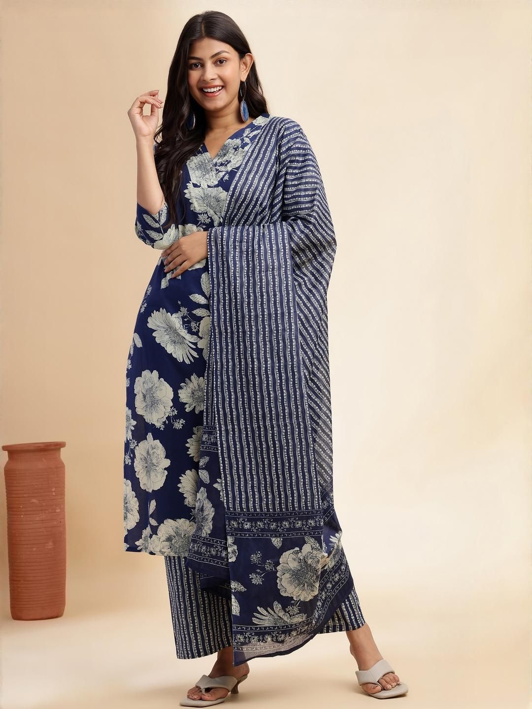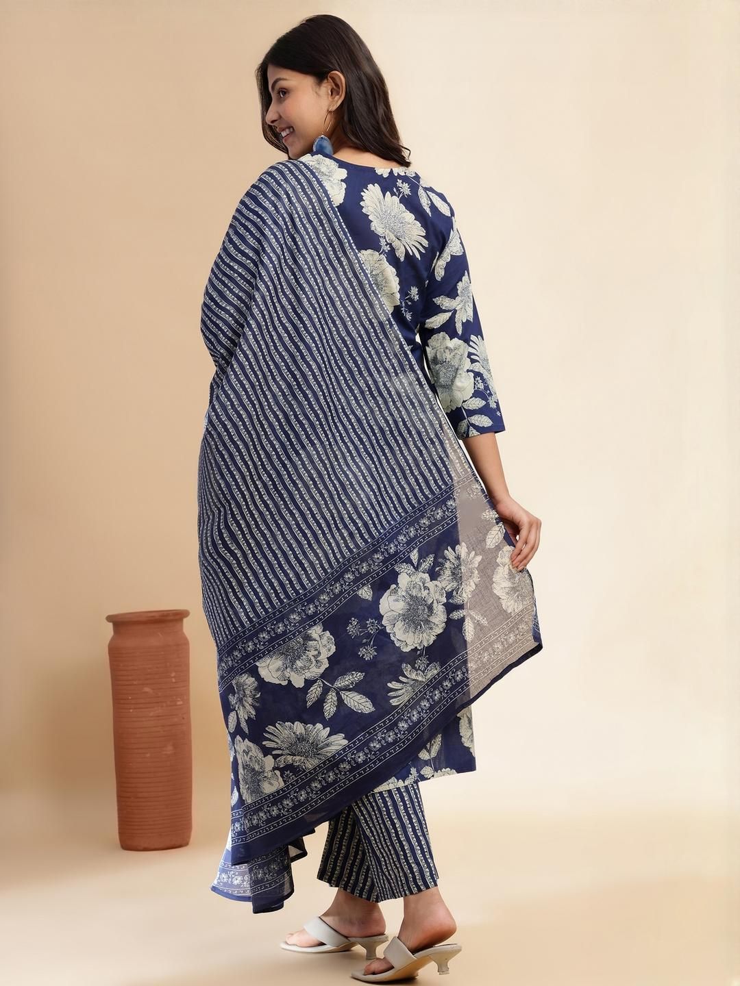 KALINI Blue Pure Cotton Kurta Sets