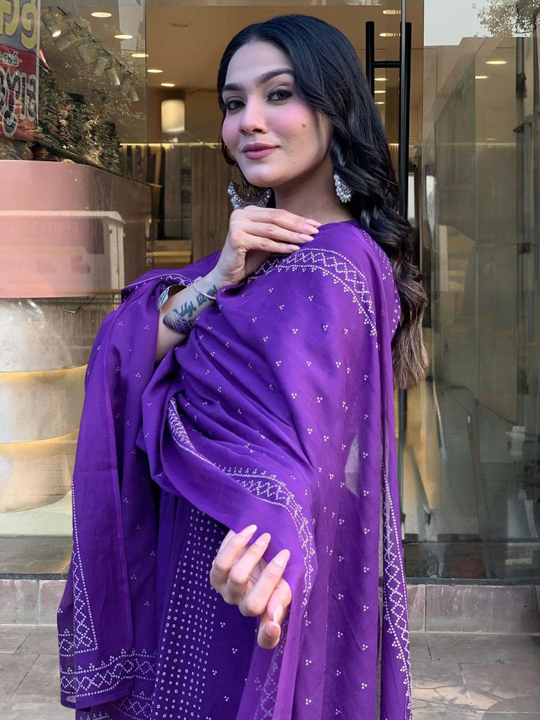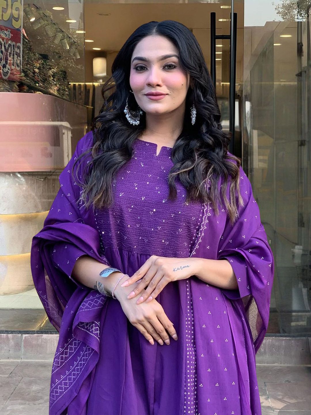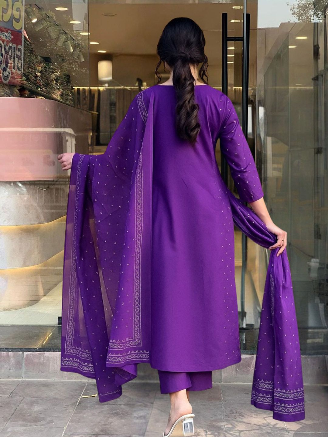 KALINI Embroidered Anarkali Thread Work Chanderi Silk Kurta With Trousers & Dupatta