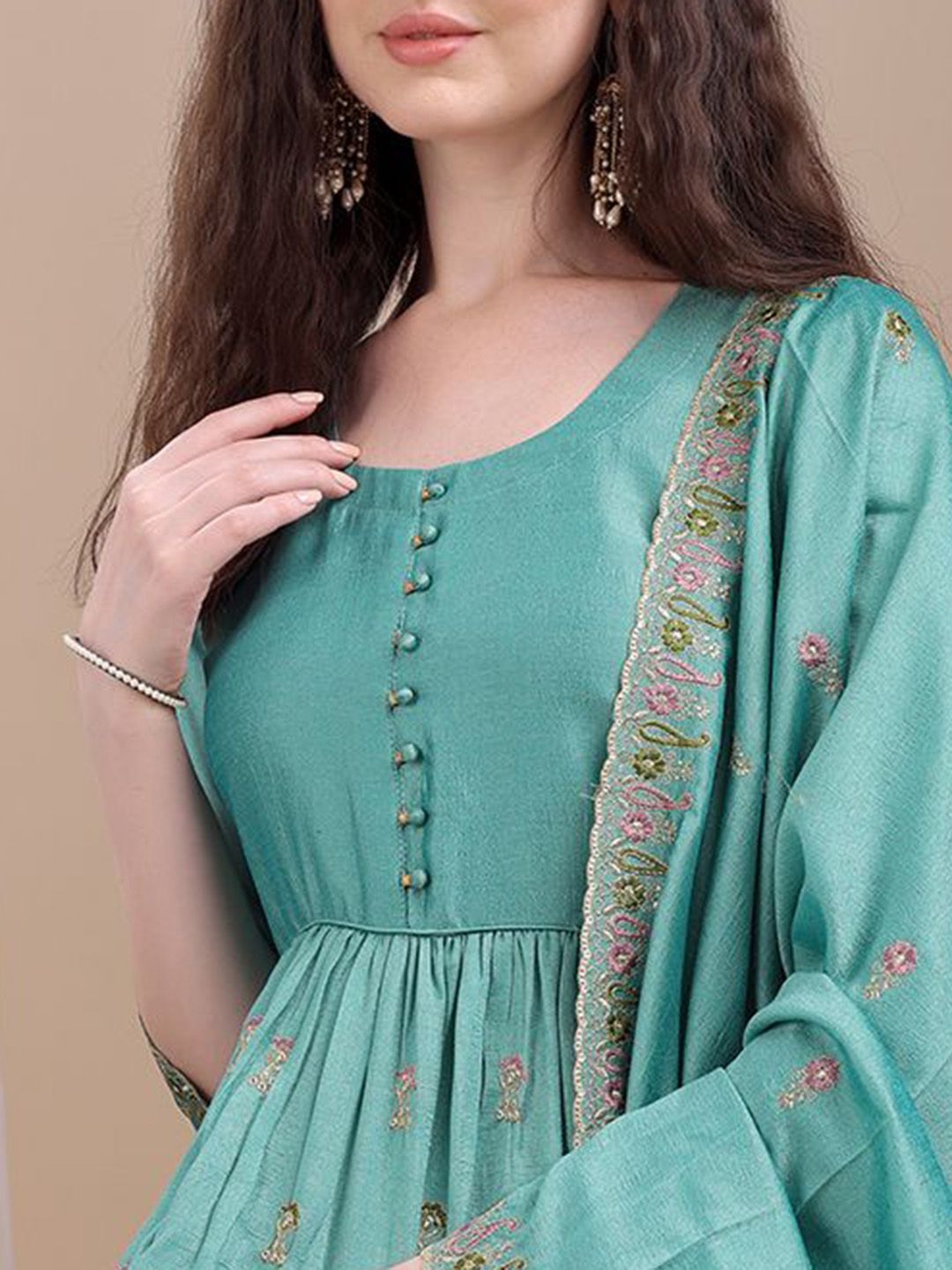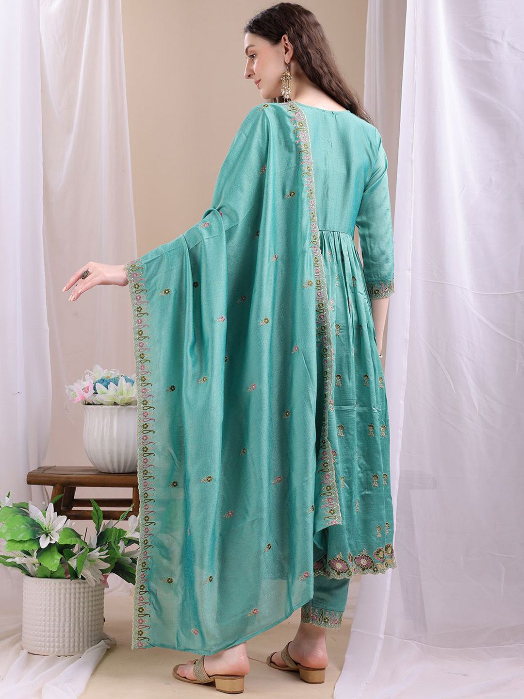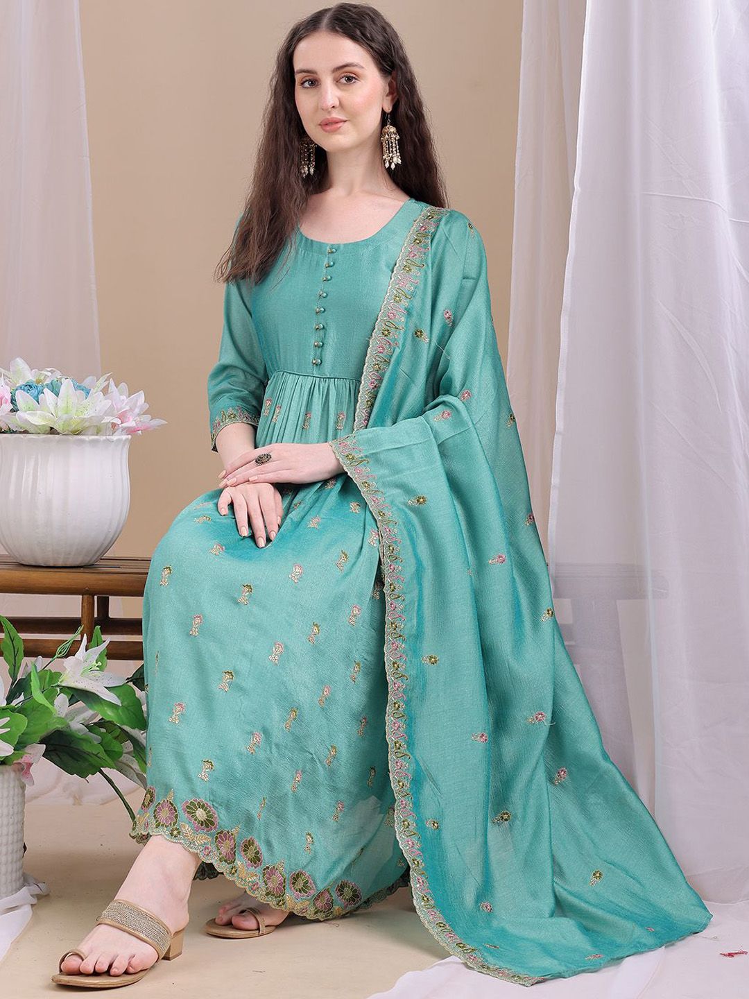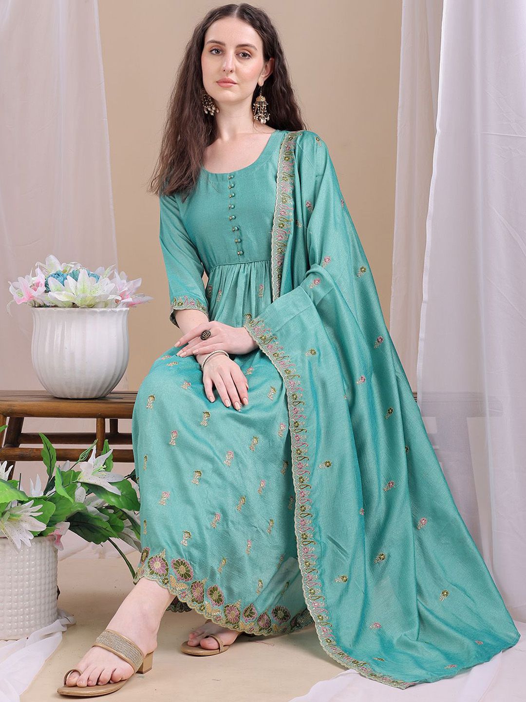KALINI Ethnic Motifs Embroidered Anarkali Thread Work Kurta With Trousers & Dupatta