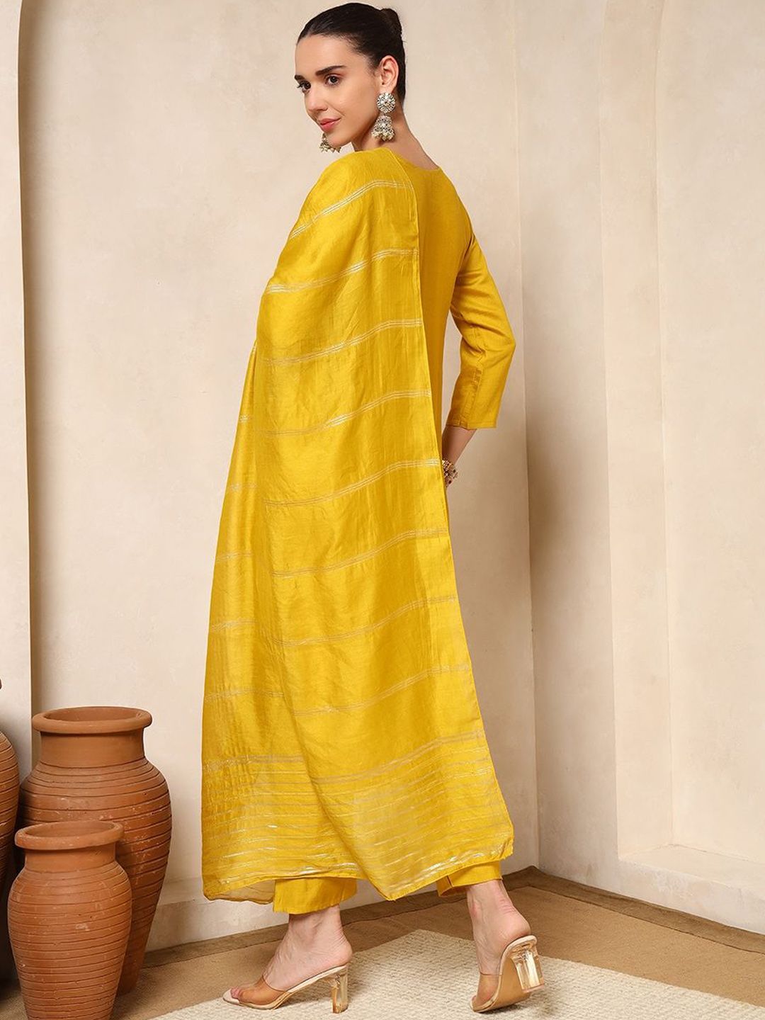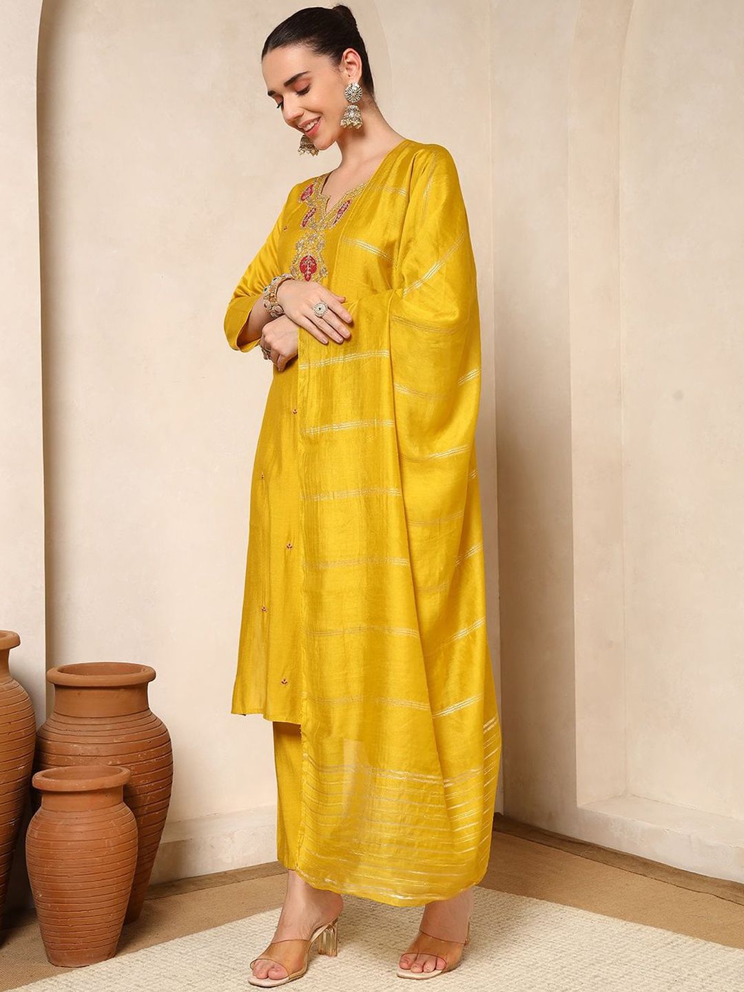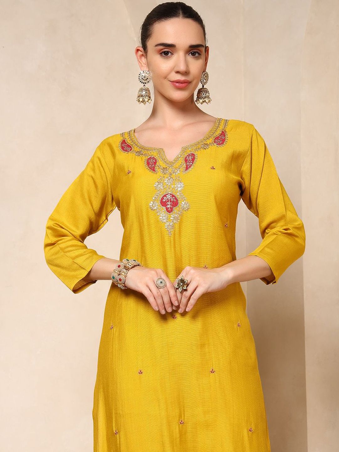 KALINI Ethnic Motifs Embroidered Straight Sequinned Kurta With Trousers & Dupatta