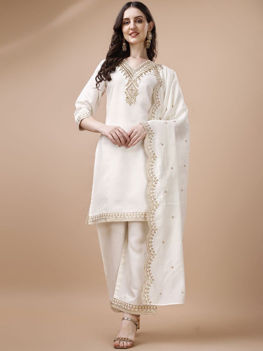 Buy this stylish KALINI Ethnic Motifs Embroidered Straight Zari Kurta With Trousers & Dupatta at Marincart Nepal. This product offers great quality and value. Perfect for those looking for the latest trends in fashion. Get yours now at unbeatable prices.